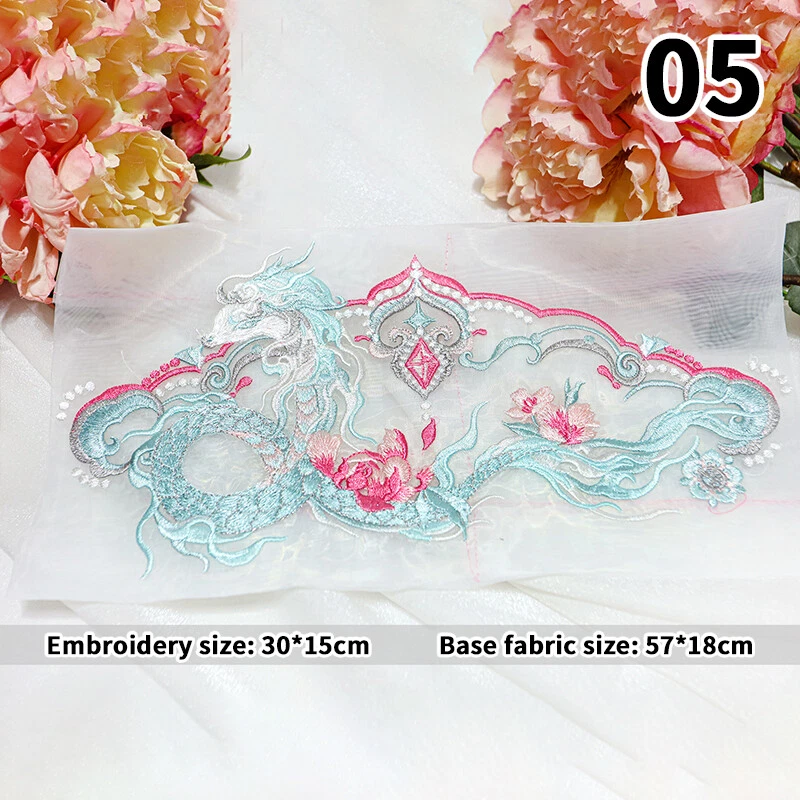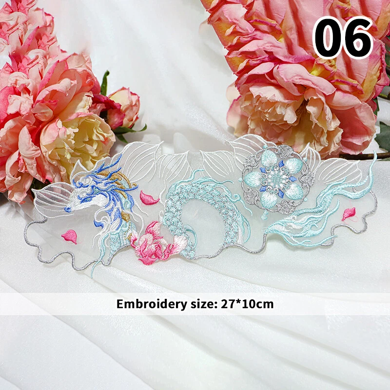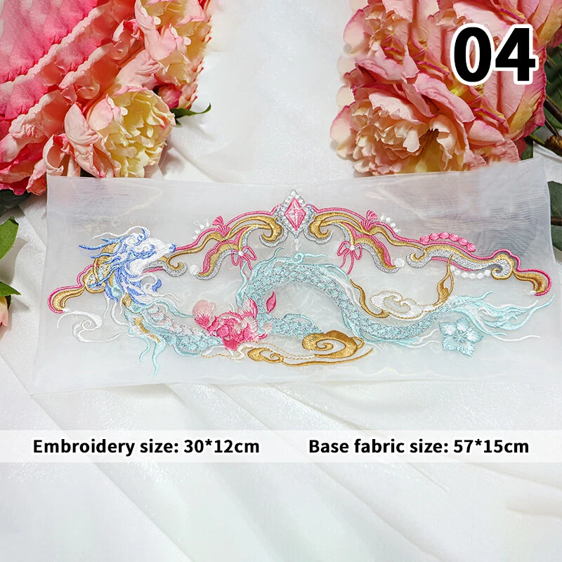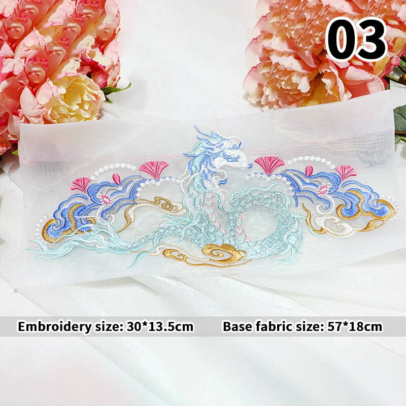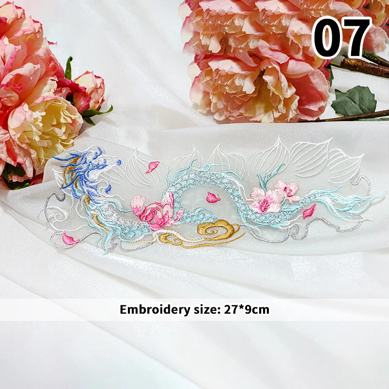 1pc Chinese Style Embroidered Patches Dragon Patch Hanfu DIY Sew ing Accessories Type:Flower Embroidered Patches for Hanfu Material:Organza Size:As shown in the picture Packing Include:1pc Chinese Style Embroidered Patch Pls note: 1. Due to different computer display colors, the actual color may be slightly different from the above pictures. 2. Due to manual measurement, please allow 1-3cm error.