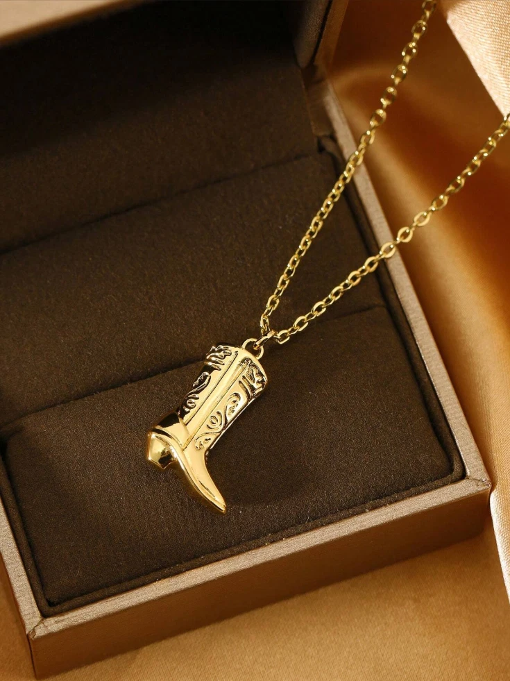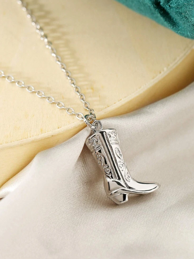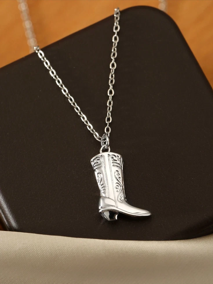 Unisex Fashionable Cowboy Boot Pendant Necklace Unisex Fashionable Cowboy Boot Pendant Necklace Elevate your accessory collection with this Unisex Fashionable Cowboy Boot Pendant Necklace . Designed for both men and women, this unique piece adds a touch of elegance and style to any outfit. Key Features: Design: High heel pendant symbolizing fashion and sophistication. Material: Durable alloy with a polished finish for long-lasting shine. Chain Length: Adjustable to fit various preferences. Unisex: Suitable for both men and women, making it a versatile accessory. Occasions: Perfect for parties, events, or daily wear to showcase your unique style. FREE SHIPPING Don't miss out on this trendy unisex cowboy boot pendant necklace . It's an ideal gift for fashion enthusiasts or a stylish addition to your own jewelry collection. Order now and enjoy FREE SHIPPING !