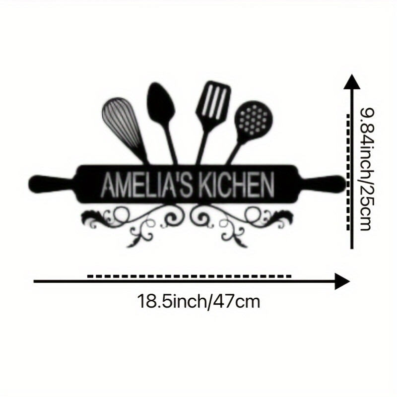 1pc Customizable Amelia's Kitchen Metal Wall Art in Art Deco Style with Detachable Design