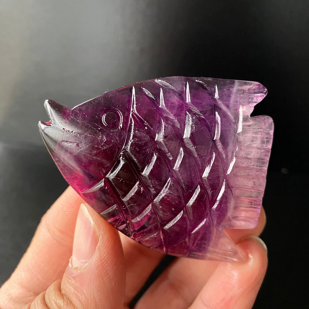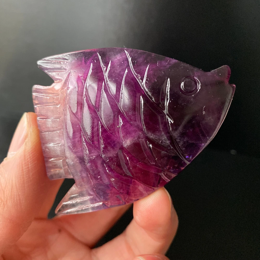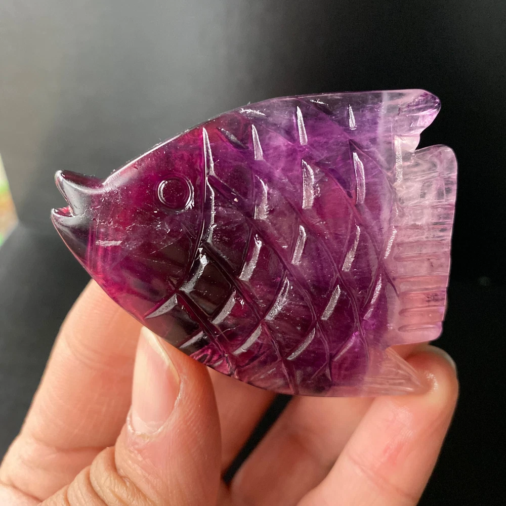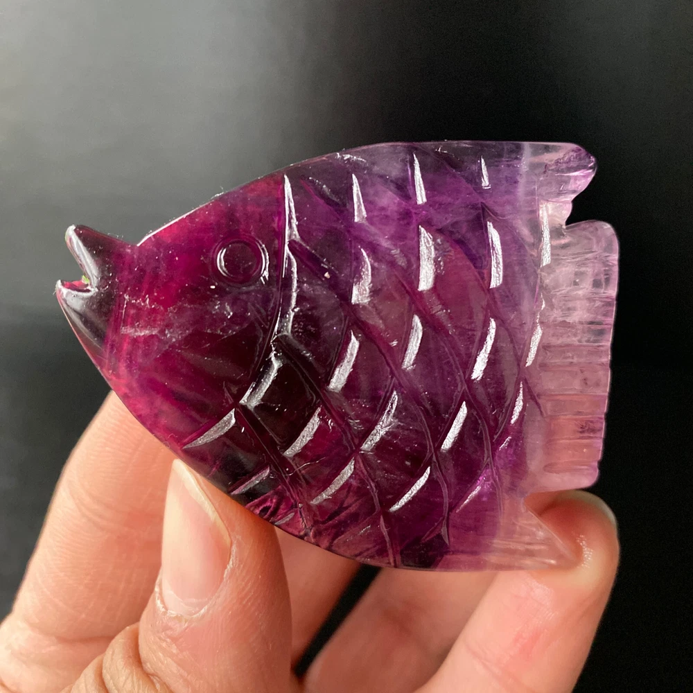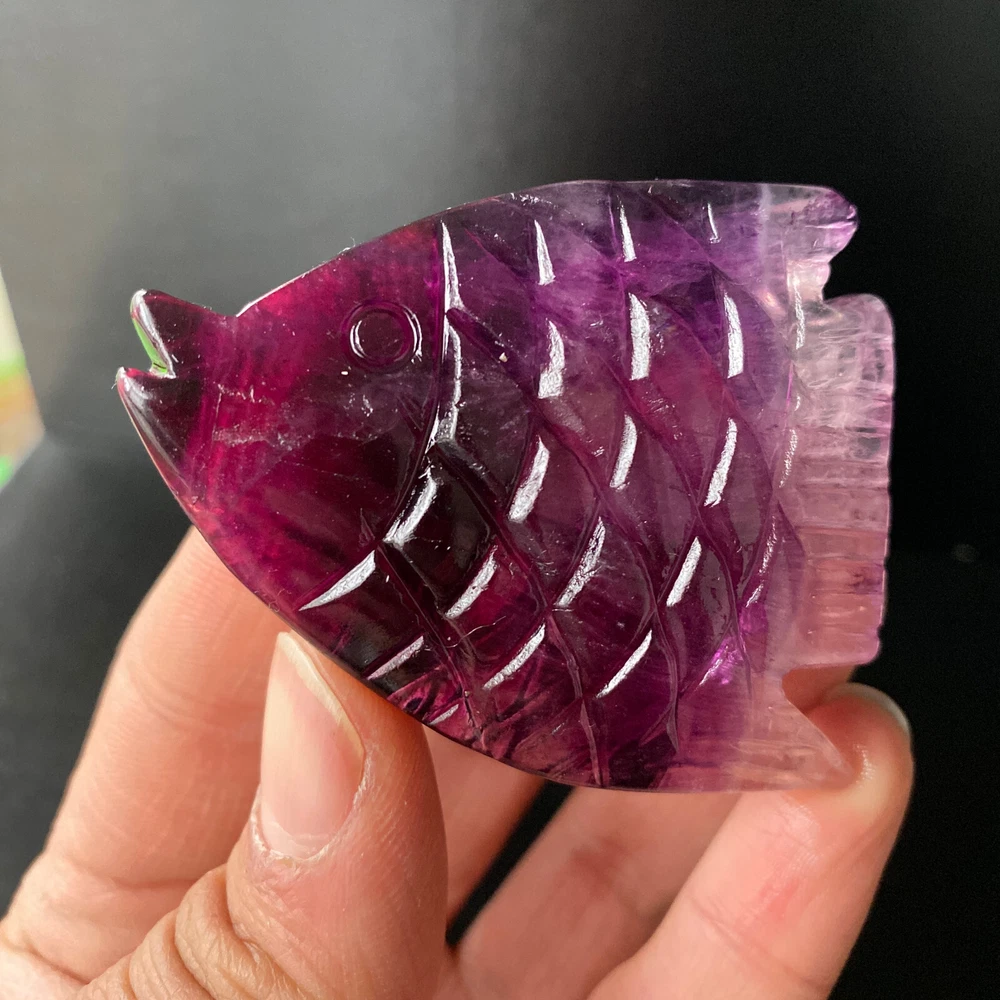 1pc Natural Fluorite Quartz Carved Fish Skull Crystal Reiki Healing Gem Decor