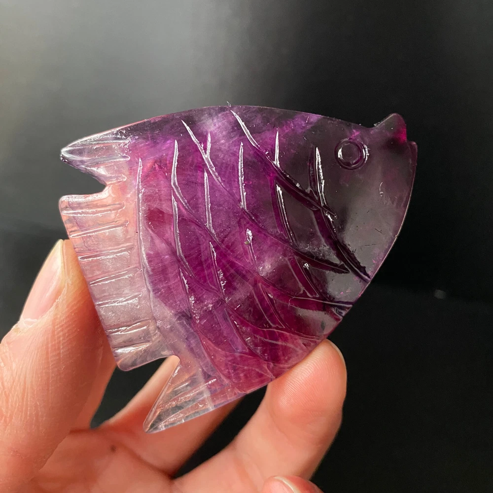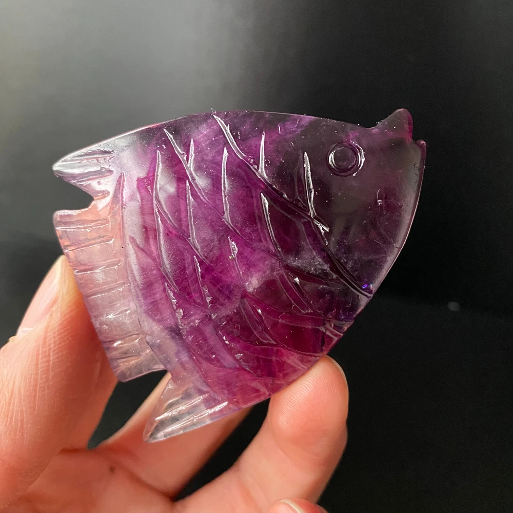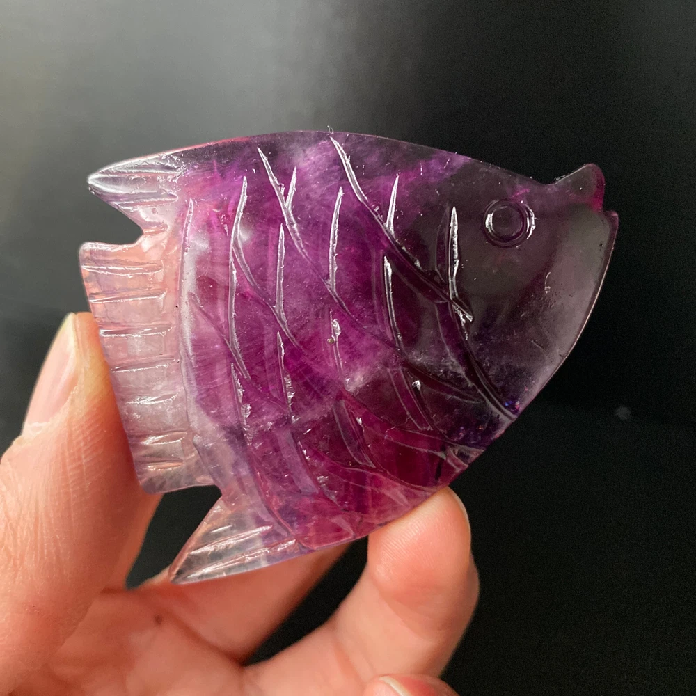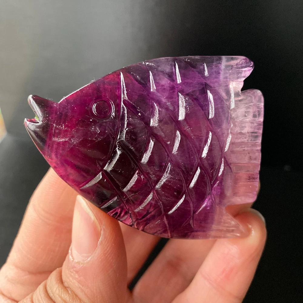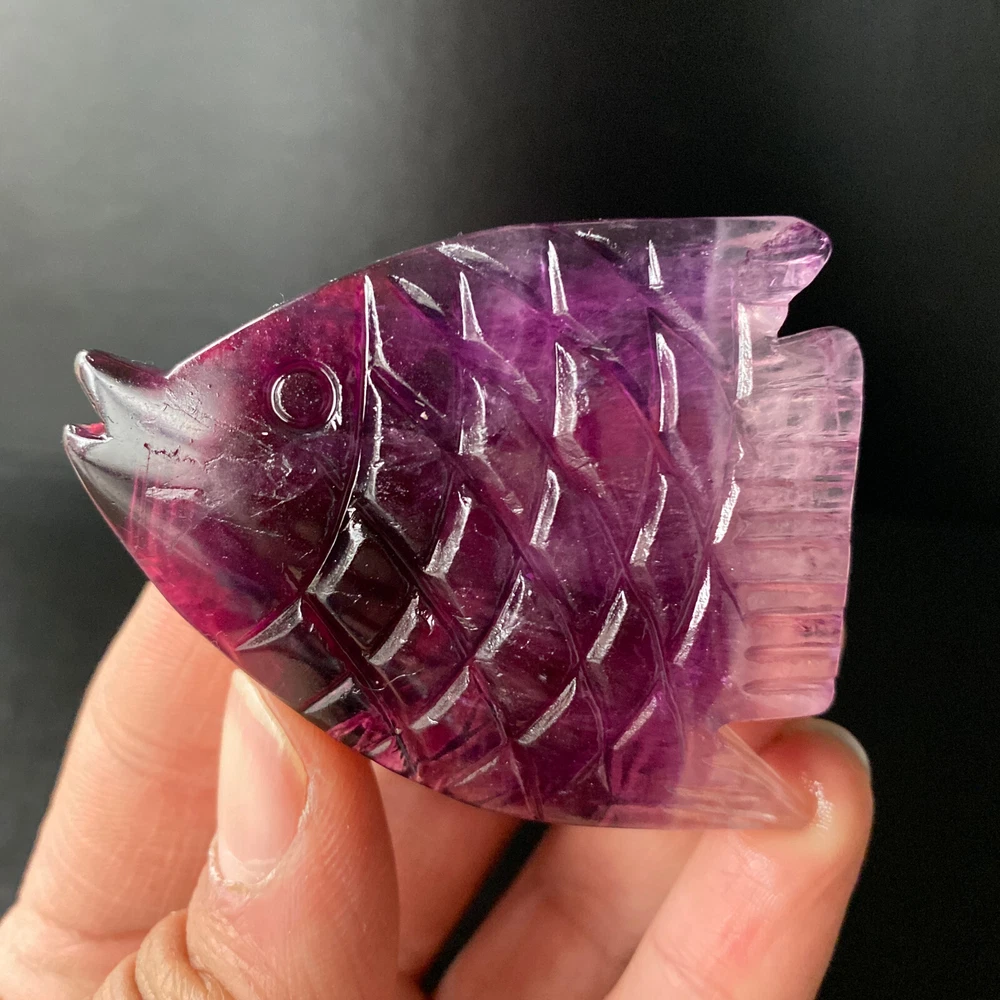 1pc Natural Fluorite Quartz Carved Fish Skull Crystal Reiki Healing Gem Decor