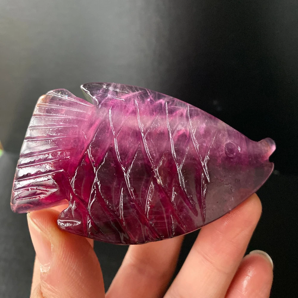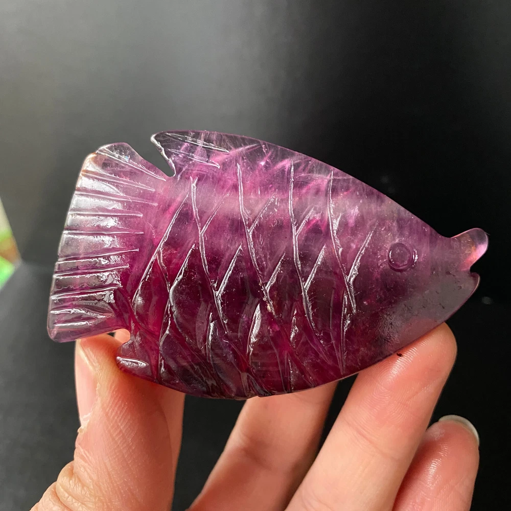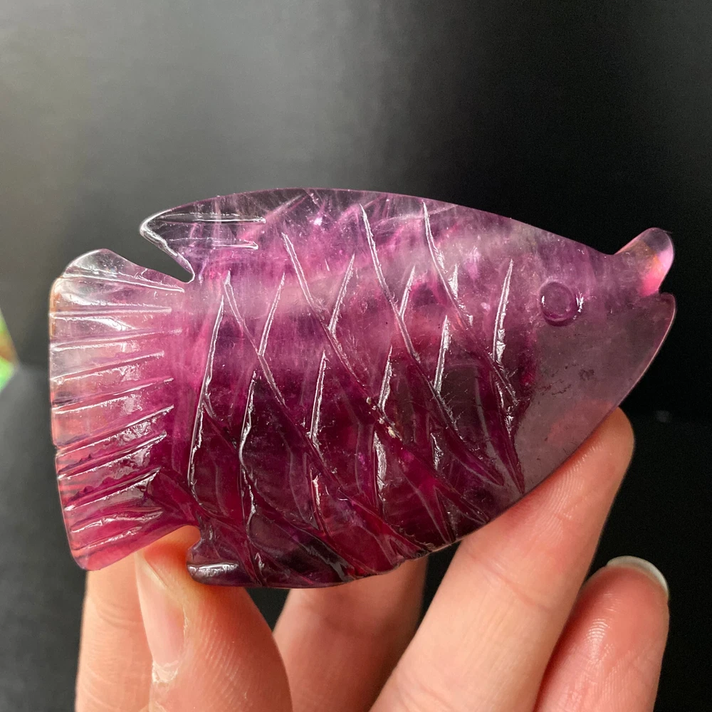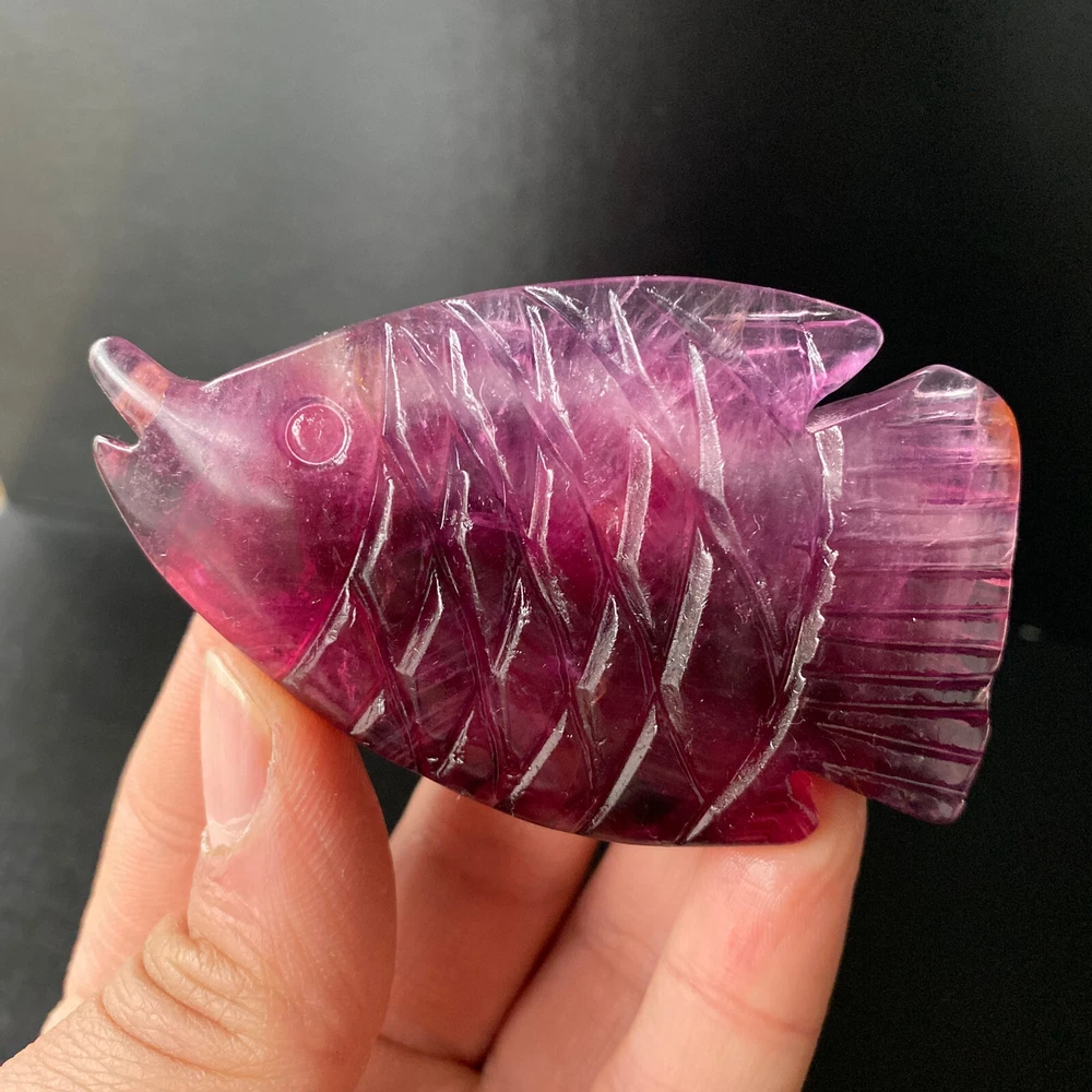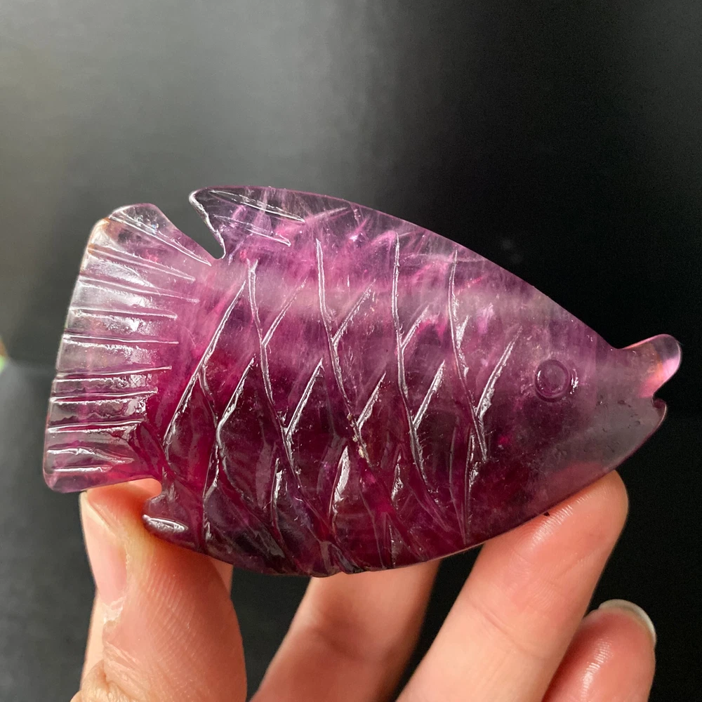 1pc Natural Fluorite Quartz Carved Fish Skull Crystal Reiki Healing Gem Decor
