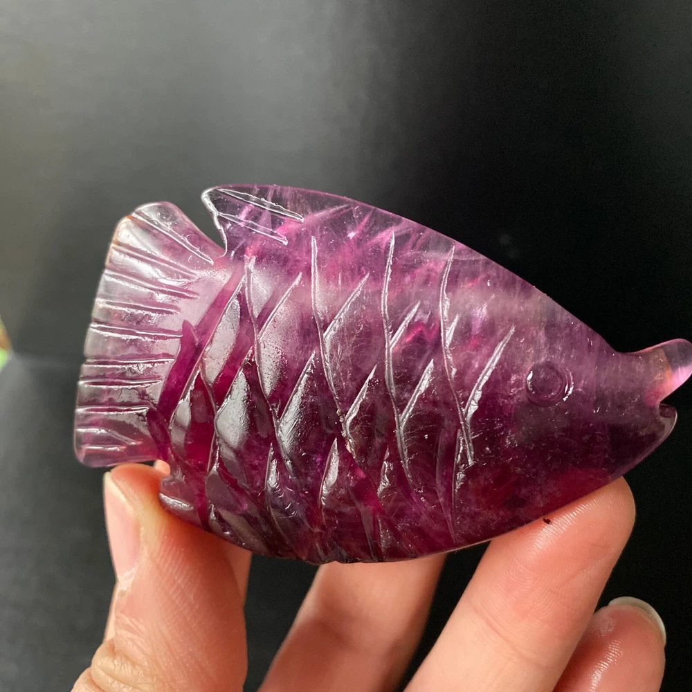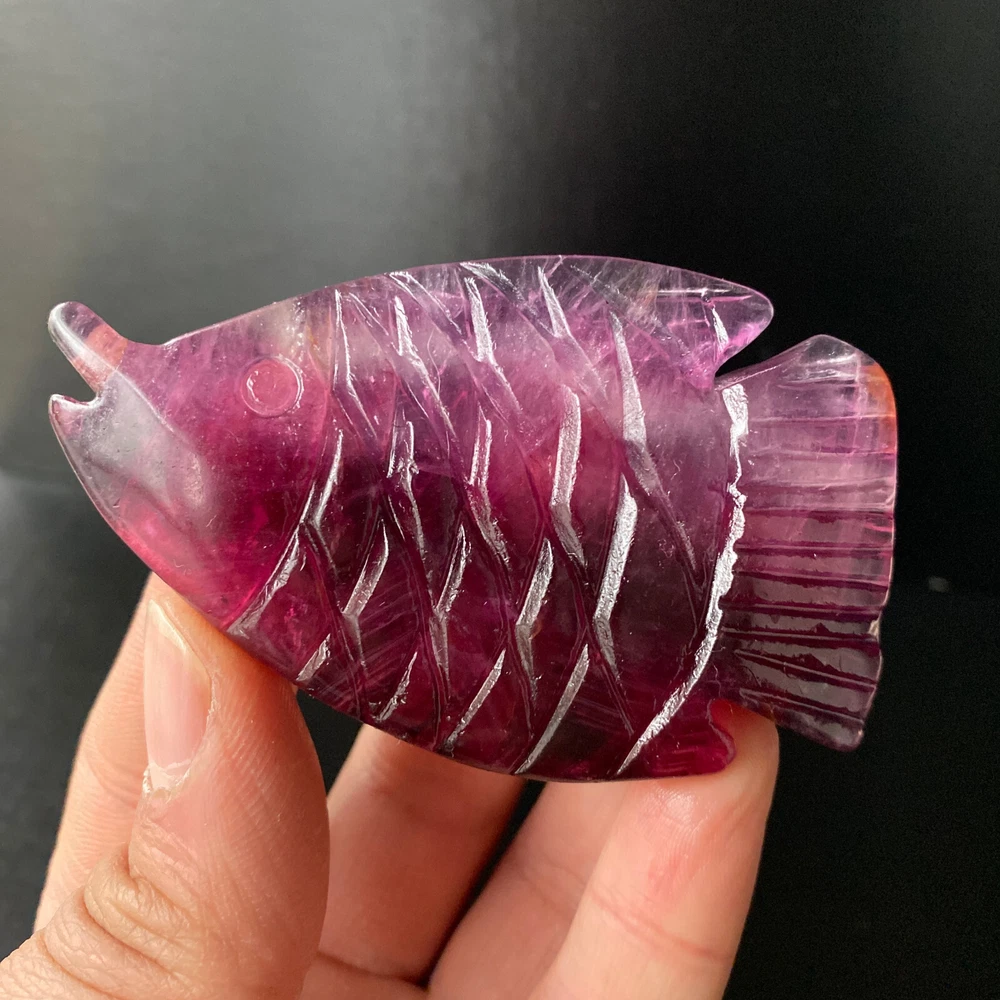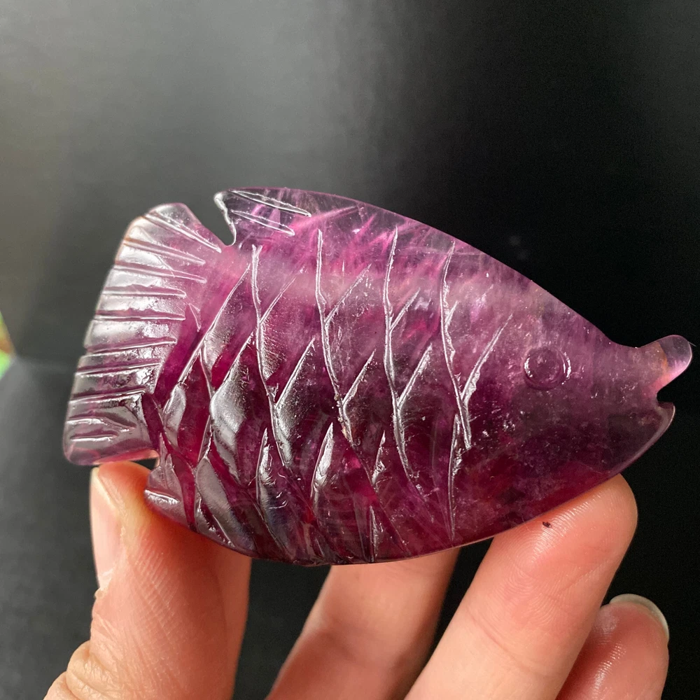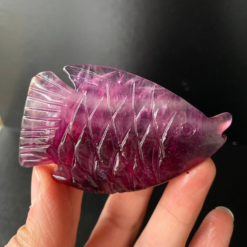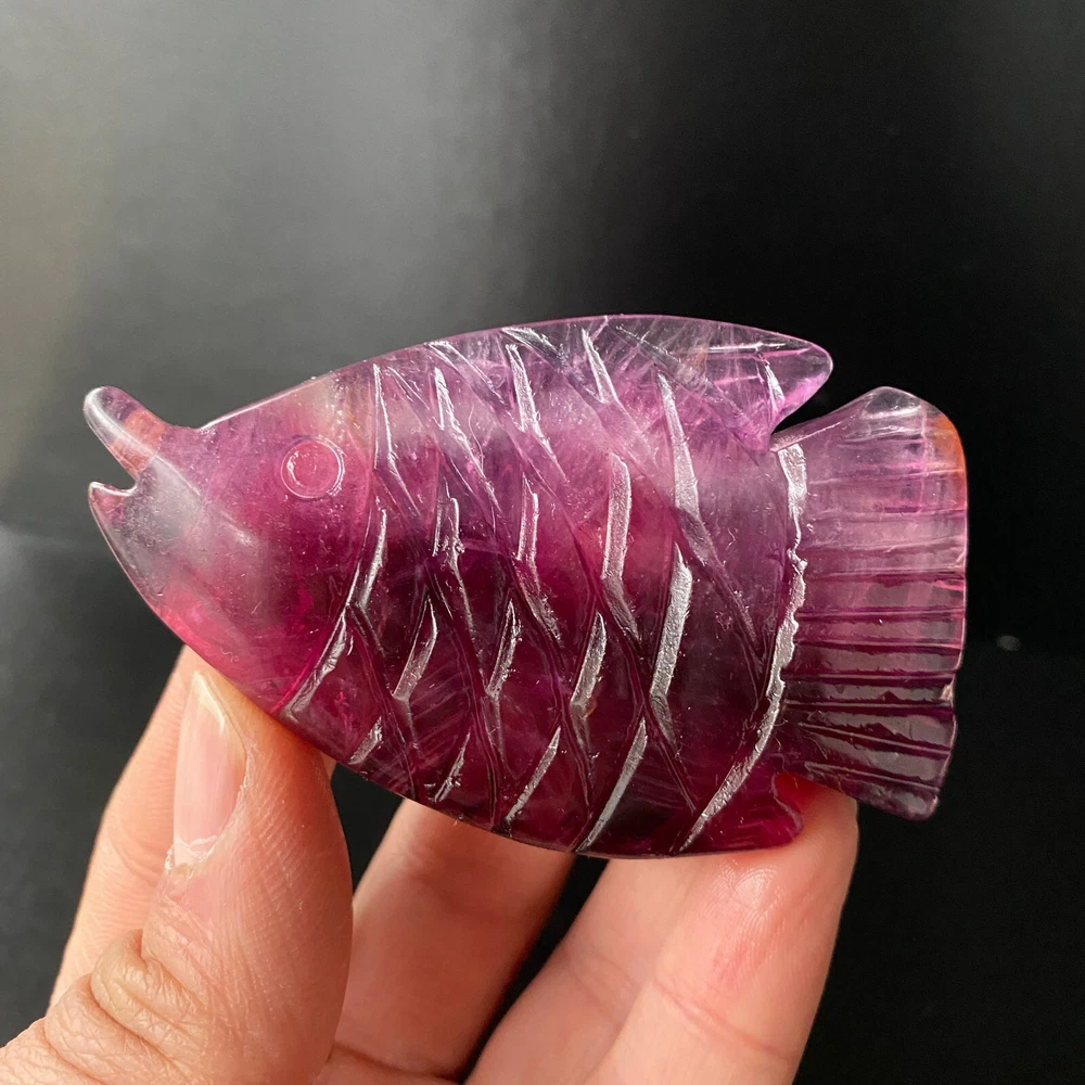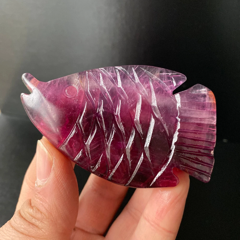1pc Natural Fluorite Quartz Carved Fish Skull Crystal Reiki Healing Gem Decor