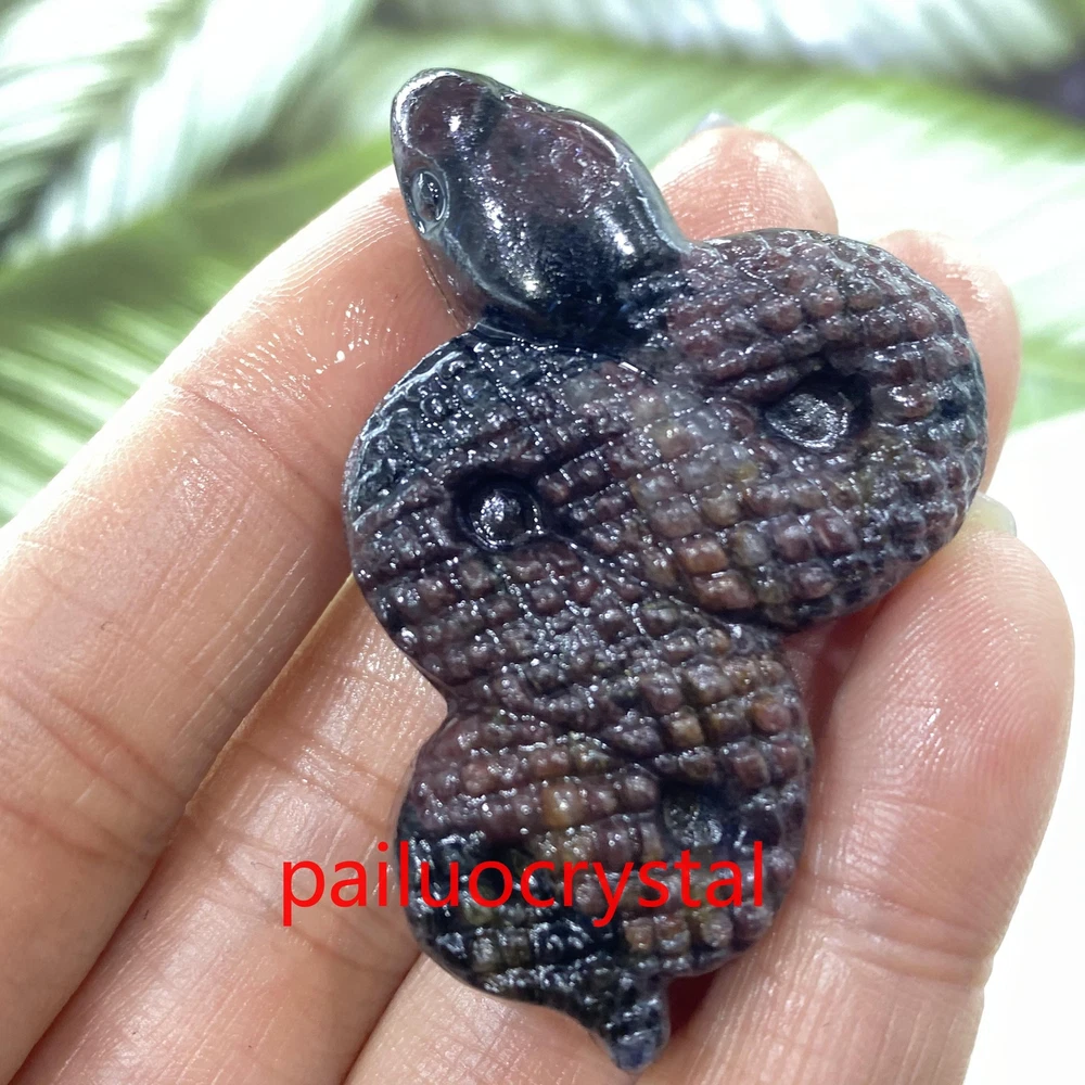 1pc Natural Garnet Snake Skull Quartz Crystal Skull Carved Figurines Healing 2"