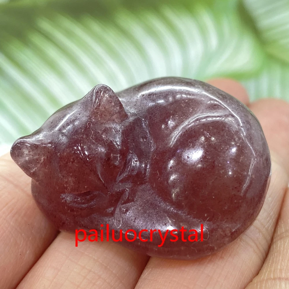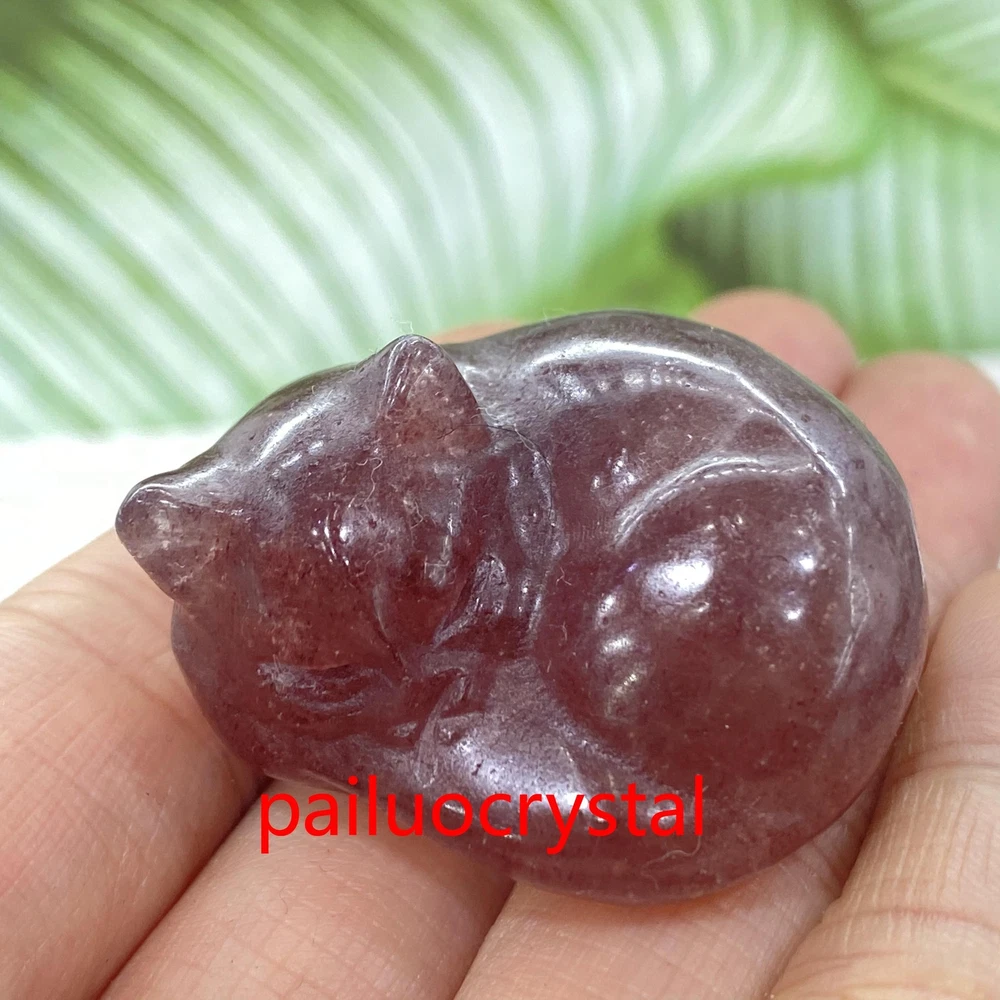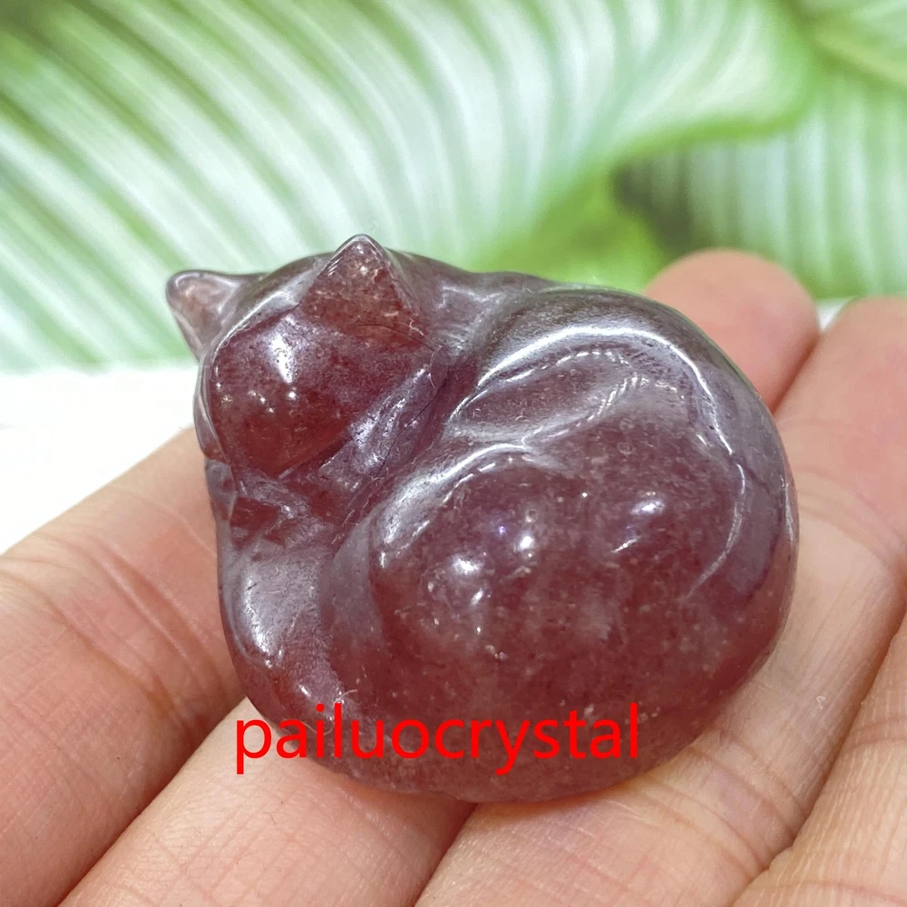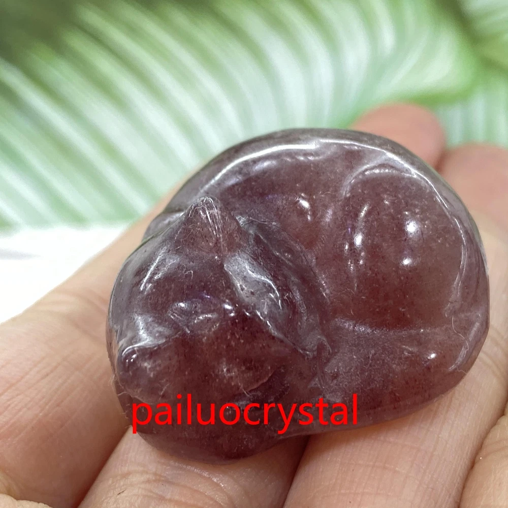 1pc Natural Strawberry Quartz Cat Quartz Crystal Skull Carved Figurines Gem 1.5"