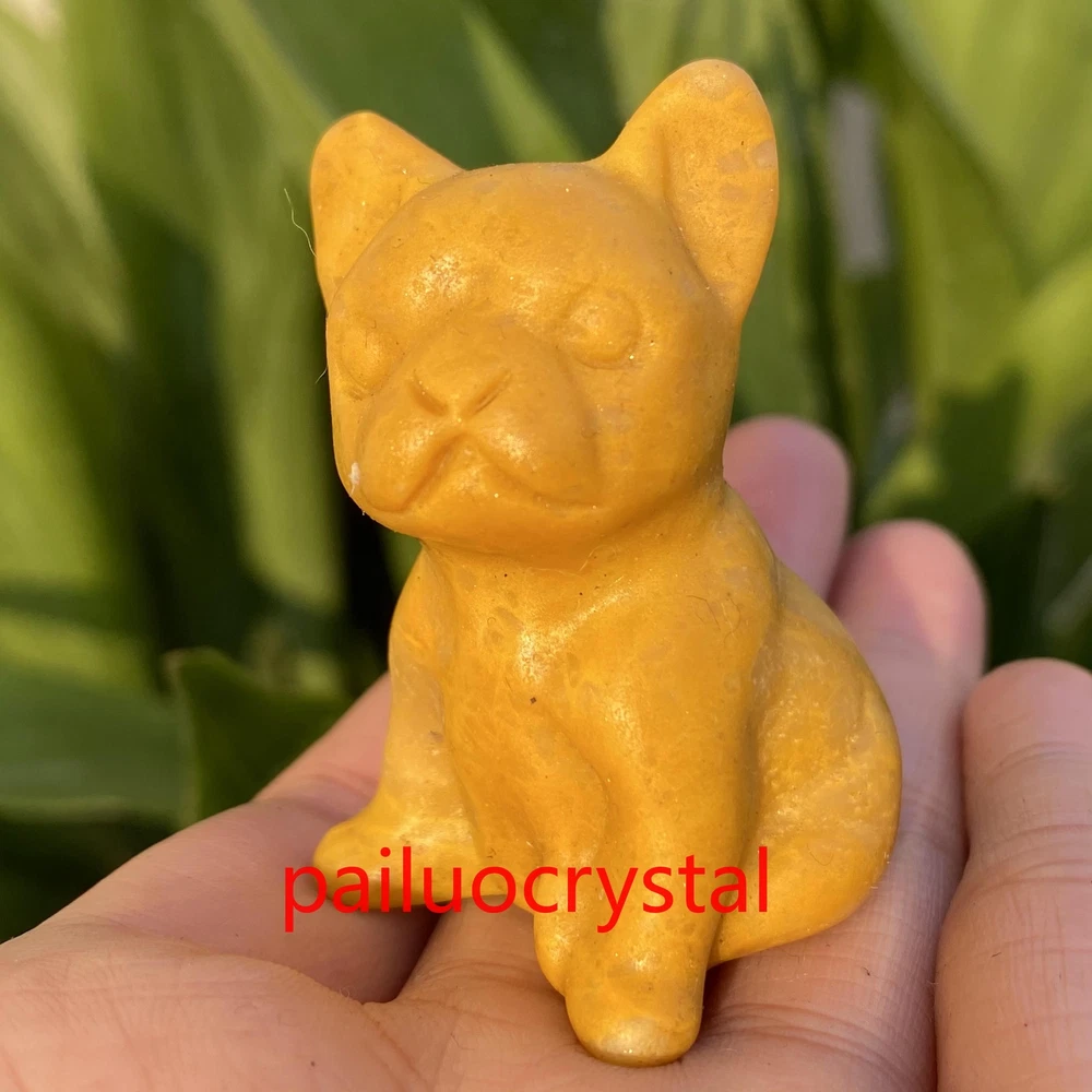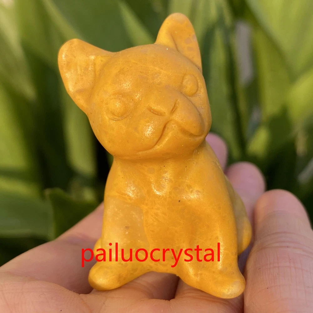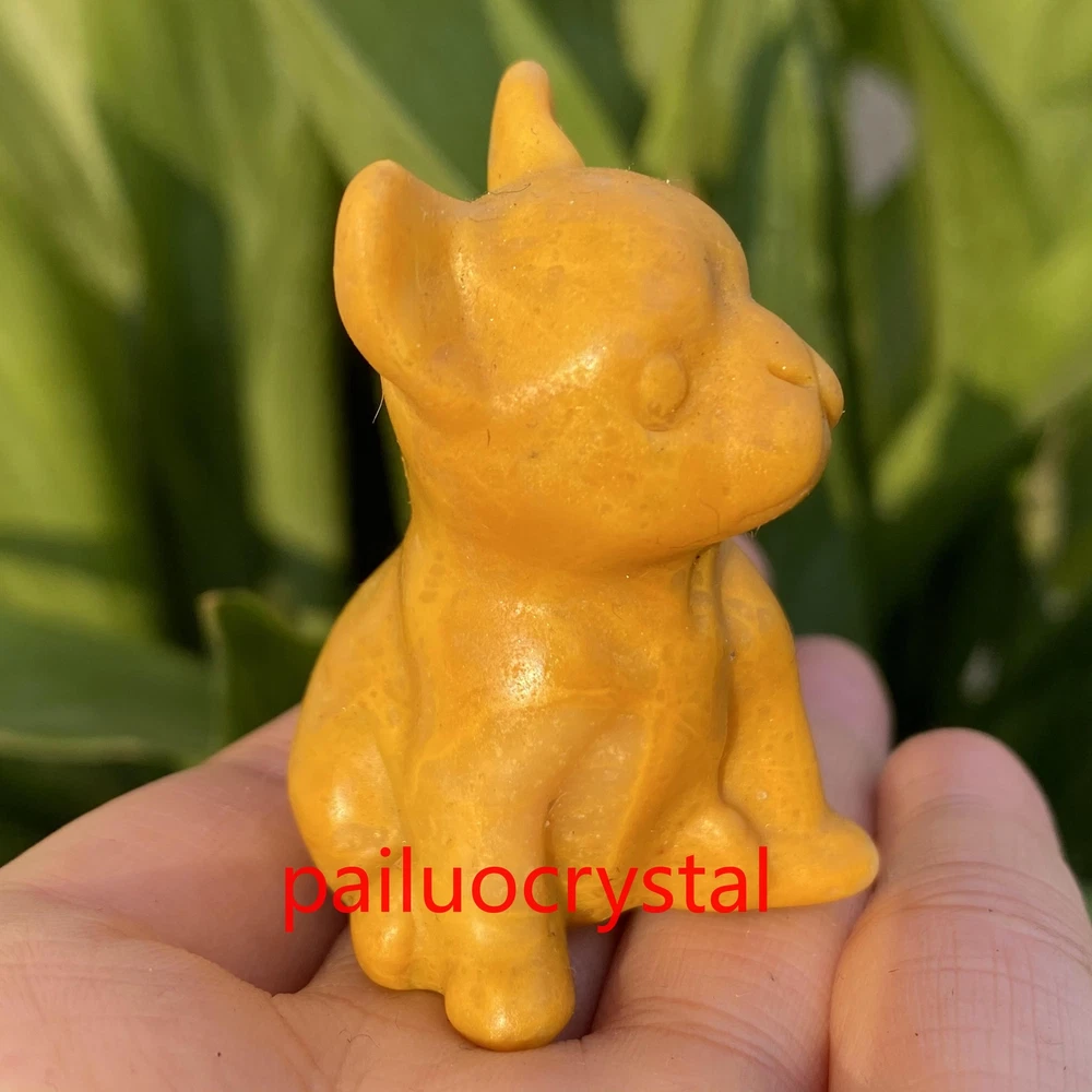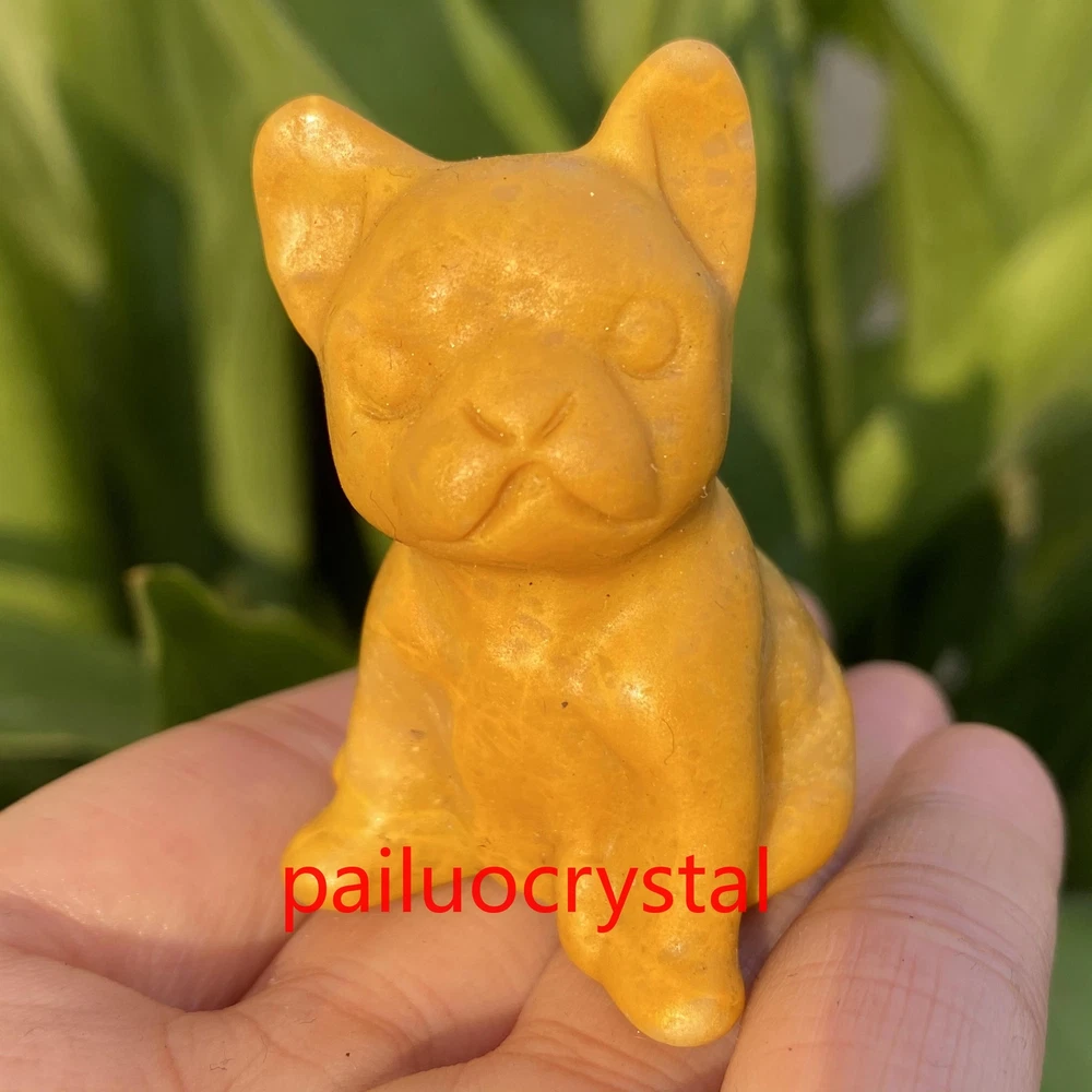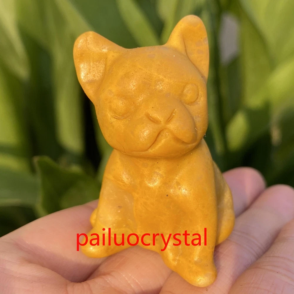 1pc Natural Topaz Bulldog Quartz Crystal Skull Carved Figurines Healing Gem 2"