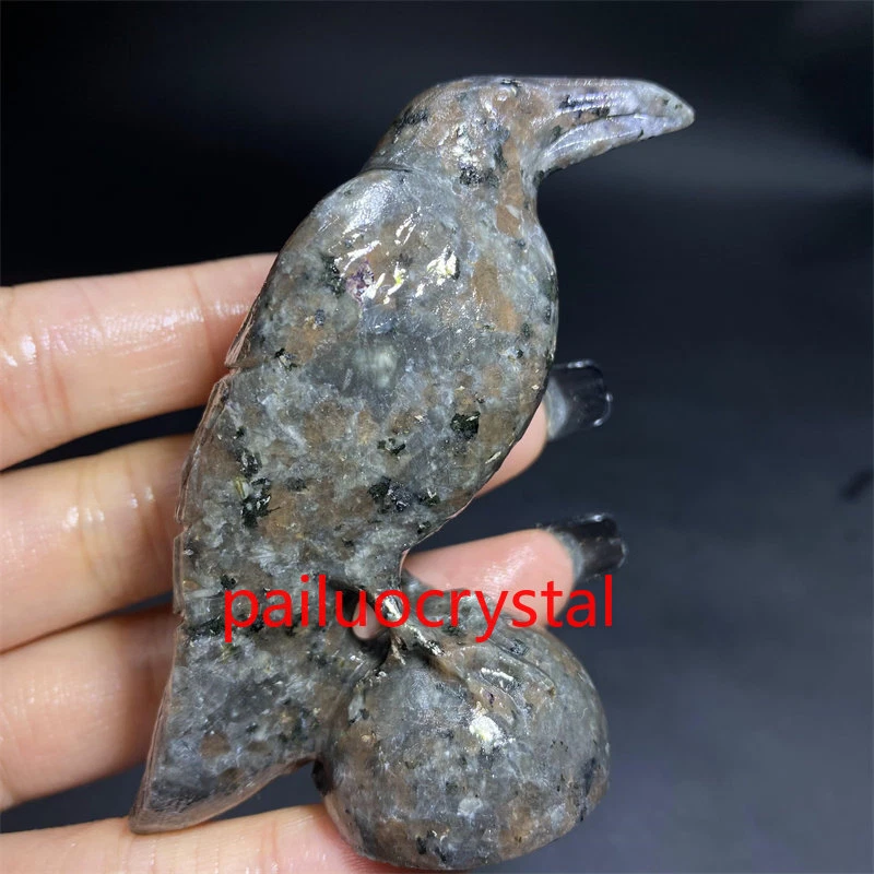 1pc Natural Yooperlite Crow Skull Quartz Crystal Skull Carved Figurines Gem 2.7"