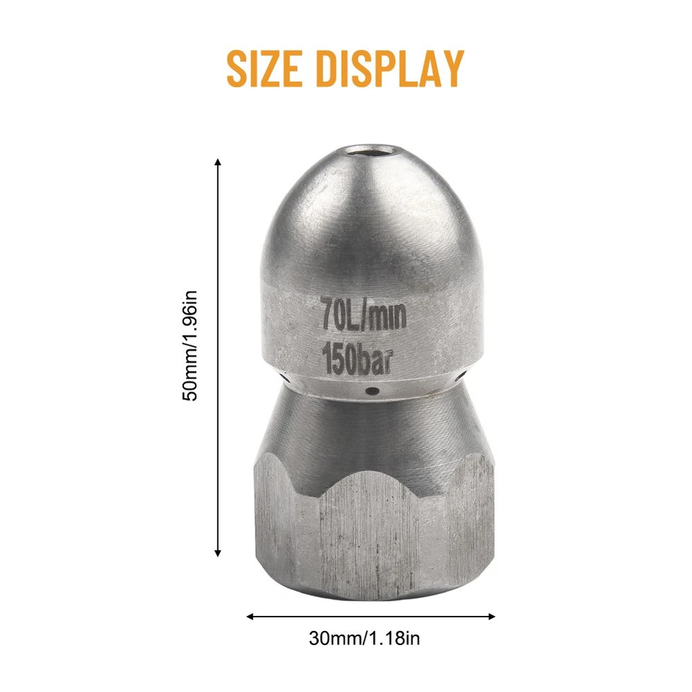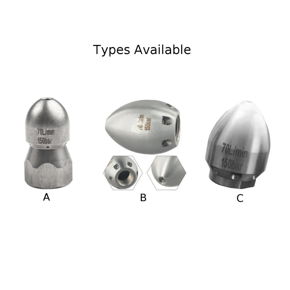 Product Description Features: * You will receive a new and high quality Nozzle! * Using high quality materials, high quality manufacturing process, strong and , life. *Pressure washer sewer jetter nozzle is quick and easy to use for heavy dirty cleaning, such as leaves, dirt and clogs. *The high pressure nozzle attaches to a standard garden hose. The household machine cannot be used. The machine is too small and the pressure is low. Low flow machine is not suitable for use Details: Material: stainless steel Color: sliver Size :thread G1/2inch A: 50mm*30mm/1.97inch*1.18inch,Front 1 hole Back 6 hole s B: 60mm*45mm/2.36inch*1.77inch, Front 1 hole Back 6 hole s C: 65mm*50mm/2.56inch*1.97inch, Front 1 hole Back 8 hole s Package content: 1Pcs Nozzle Notes: 1. Please check the size carefully before you buy. 2. Due to the difference of computer monitor, the color may be slightly different from the picture above. Thank you for your understanding. 3. Manual measurement, please allow 2-4mm error. 4. If you have any questions, please feel to contact us, we will reply and help you solve it as soon as possible. Payment Payment must be completed within 5 days. If you have any problems about payment, please contact us via ebay message. Delivery details We only ship to confirmed ebay Order addresses. Please comfirm that your Order address is in line with your shipping address. Please kindly note that the c ombined shipping is not provided because the shipping fee is calculated by weight. Also, the each additional item means exactly the the same color and size. It takes about 7 -15 working days to US; about 10-30 working days to other countries. Transit time may be a little delayed because of the bad weather and customs inspection . If you do not receive your item within 30 working days since payment finished, please contact us immediately for further assistance. Contact us We strive for 100% customer satisfaction! Positive Feedback is very important to us. If you have any questions, p lease feel free to contact us via "Ask seller a question" . We will reply your email within 24 working hours.