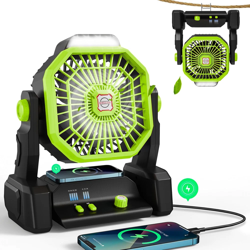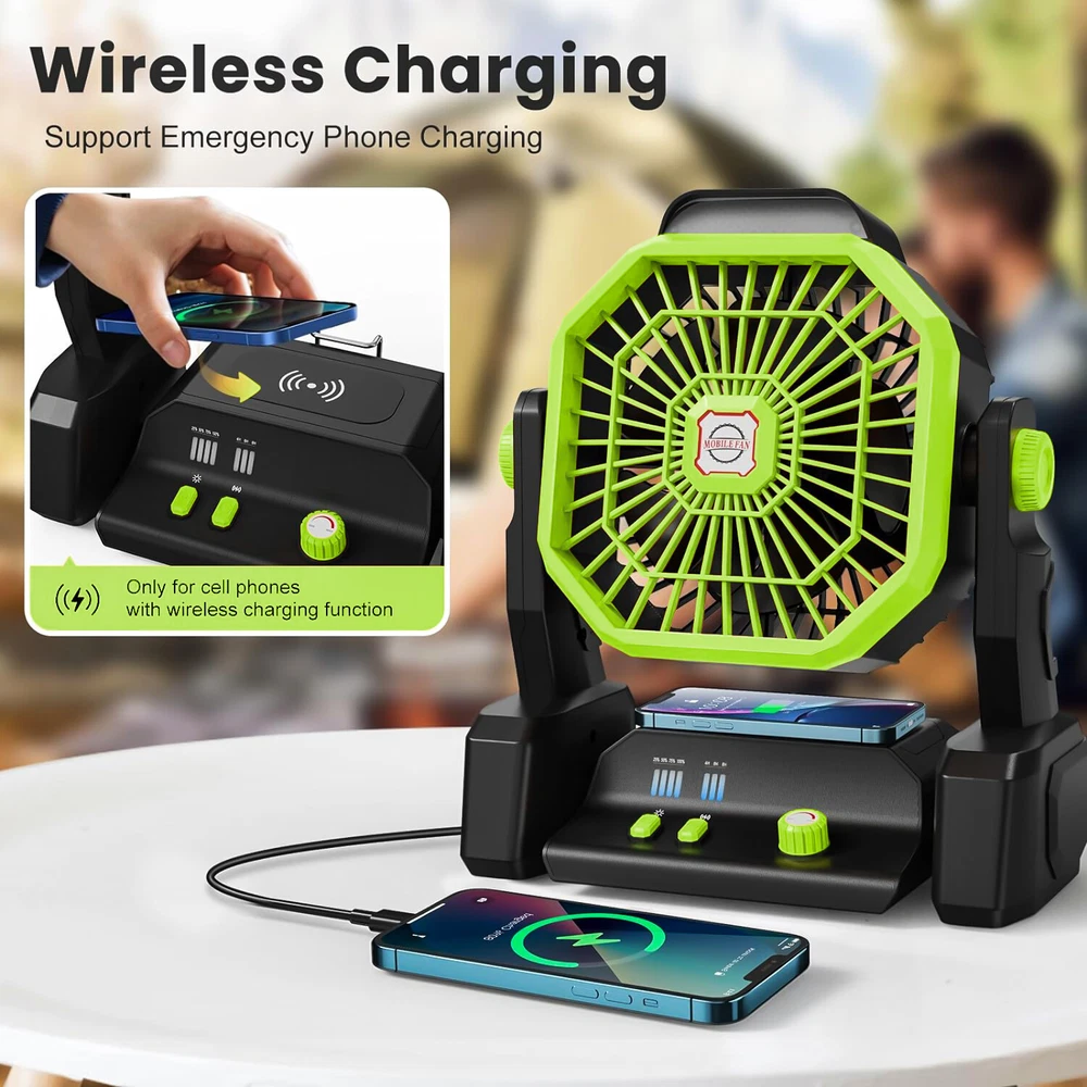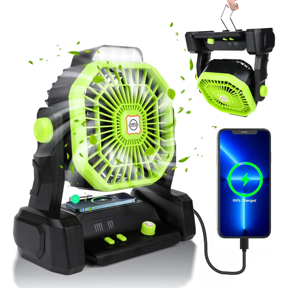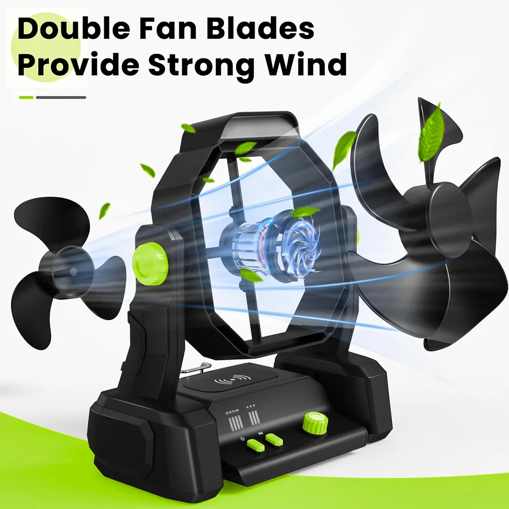 Description: High-Capacity Endurance Experience the great outdoors uninterrupted with our rechargeable camping fan equipped with a powerful 15000mAh battery. This high-capacity fan ensures a continuous cooling breeze, perfect for long camping trips in your tent or RV. Dual Blades & Flexible Adjustment Featuring dual fan blades for enhanced airflow and a 270° adjustable angle, this camping fan directs a strong breeze exactly where you need it. Perfectly engineered for efficient air circulation to keep you cool during hot days and nights Variable Speed Control Svfruit Best choice of motor parts 1pc Rechargeable Battery Operated 15000mAh Outdoor Camping Fan Wireless Charger Description: High-Capacity Endurance Experience the great outdoors uninterrupted with our rechargeable camping fan equipped with a powerful 15000mAh battery. This high-capacity fan ensures a continuous cooling breeze, perfect for long camping trips in your tent or RV. Dual Blades & Flexible Adjustment Featuring dual fan blades for enhanced airflow and a 270° adjustable angle, this camping fan directs a strong breeze exactly where you need it. Perfectly engineered for efficient air circulation to keep you cool during hot days and nights Variable Speed Control Customize your comfort with our portable camping fan's stepless speed regulation. From a gentle whisper to a powerful gust, easily adjust the airflow to suit any condition.More than 12 hours of tailored cooling on a single charge. Multifunctional Charging This innovative portable camping fan has a wireless charging pad for phones that support wireless charging, just press the wireless charging button twice to start charging.The battery-powered fan also has a USB-A and a Type-C port, can be used as an emergency power source for phones, flashlights, and laptops. Adjustable Lighting and Timer Illuminate your night-time campsite with 3 levels of LED brightness from our versatile camping fan. Plus, with the handy timer function, you can drift off to sleep under the stars without worrying about battery drain.Feel the breeze, light up the night, and stay powered up with this essential outdoor gadget.If you encounter any issues about the battery fan, please contact us. Elevate your camping experience,add our high-performance camping fan to your gear today! Power Indicator and Timing Function Our camping fan is designed with four power indicator lights to keep you informed of the remaining charge at a glance. For added convenience, it boasts a timer function that can be set to 4, 6, or 8 hours, ensuring you enjoy energy efficiency and uninterrupted comfort during your sleep or work. To engage the timer, simply activate the fan. Plus, the wireless charging feature comes to life with just two presses of the button. Handy Hook Our camping fan is designed with a handy hook feature, providing the ultimate in convenience for outdoor enthusiasts. Hang it in your tent, from a tree branch, or anywhere else you need targeted airflow. Package : 1 x camping fan Specifications: Type: Movable camping fan Material: ABS plastic Light color: Black/Green Product size:10.3"x5.5"x11.3" Battery: 15000mAh (included) Working Time: 6-12 Hours Matters need attention: 1. Please recharge when the fan stop or LED light doesn't work. 2. please chenargo nce in three month when the product not in use to increases product selife time 3. Do no chargo or fnger into the fan cover when the fan is working.(Children under 3 years ma needthe guardianship of adults). 4. Do not open the fan front and back cover to refit it. 5. Do not use this product near free or under water.Type-c cable is included. No charger adapter. 6. Please use the charging cable that comes with the product to charge. 7.Do not break or throw the item with brute force. Please feel free to contact us if you have any questions. Wish you have a good shopping time~~~ Item Specifics Brand Unbranded Type Portable Ventilation Fan Color Black,Green Product Size 10.3" x 5.5" x 11.3" Battery 15000mAh Working Time 6 ~ 12Hrs Adjustable Tilt/Head 270° Item Weight 46.62oz Material ABS Plastic Cable Length Cordless Room Any Room Input Voltage 5V-2A Power 1W-6W LED Light power 0.5W-2W Power Source Battery, USB Mounting Type Handheld, Freestanding, Tabletop Features Variable speed , Auto rest timer setting , Led Light Features 2 Wireless Charger,Rechargeable,270° Adjustable,Timer Features 3 Portable, USB Power Supply,energy saving,Wireless Charger Features 4 Oscillation, Quiet Operation, Rechargeable, handy hook feature Product model A10 Speed Control Poleless knob Package 1 x camping fan Payment 1. It will be much appreciated that you finish your payment asap or it will make UPI (unpaid item case) on your account leading to be suspended or restricted by eBay when those UPI cases carry over to certain amount. 2. Any problems please contact us for more details. Shipping 1. All items will be shipped to buyer's ebay address. 2. All items will be shipped within 24-48 working hours upon receipt of payment, and multiple items will be combined shipping. 3. In most cases, delivery takes around 3-5 business days, it's highly depended on the efficiency of the shpping carrier. If your item doesn't arrive on time, please contact us immediately for further assistance. Please note there is no local pickup service available. Returns If you are not 100% satisfied with your purchase, you can return the product and get a full refund or exchange the product for another one. Please Note: Please write us a message before your return, otherwise we will not accept the package. Any product you return must be in the same condition you received it and in the original packaging. Contact Us 1. We care about our valued buyers, if you have any questions, our Customer Service staff will be very glad to help you. We try our best to reply your contact as soon as possible, please kindly allow 24 hours for us to response. 2. Our goal is to make sure you are a happy buyer and pleasant shoppin
