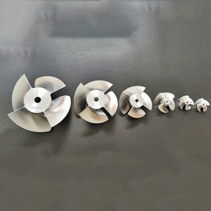 Jet Boats Water Pump 4-blade CNC Propeller Dia 40mm 60mm 80mm 100mm Aluminum Jet Paddle for DIY Sprayer Impeller Remarks : 26x4mm, it means propeller diameter is 26mm, and hole diameter is 4mm 40x5mm, it means propeller diameter is 40mm, and hole diameter is 5mm Because this product is customized, the appearance is inevitable but will not affect the use. Perfectionism carefully shot. Notice:the shaft and coin which is only for your refer,not include CNC aluminum water spray pump impeller: 1. High-efficiency impeller specially designed for marine waterjet propellers and ducted propellers. It adopts 4-blade angle of attack design, and it has high efficiency of open water and anti-cavitation. The the oretical thrust is increased by 72% compared to the 2-blade impeller. 2. The impeller adopts a large chord length design and has a wide range of high efficiency on the pump spray. 3. The impeller adopts high-strength aluminum alloy CNC multi-axis machining, which has high strength and good dynamic balance. Pa rameter: Propeller diameter:26mm/28/mm36mm/40mm, shaft diameter:4mm Propeller diameter:55mm/60mm, shaft diameter:6mm Propeller diameter:80mm, shaft diameter:8mm Propeller diameter:100mm, shaft diameter:10mm Package include: 1pcs x Propeller (no shaft)