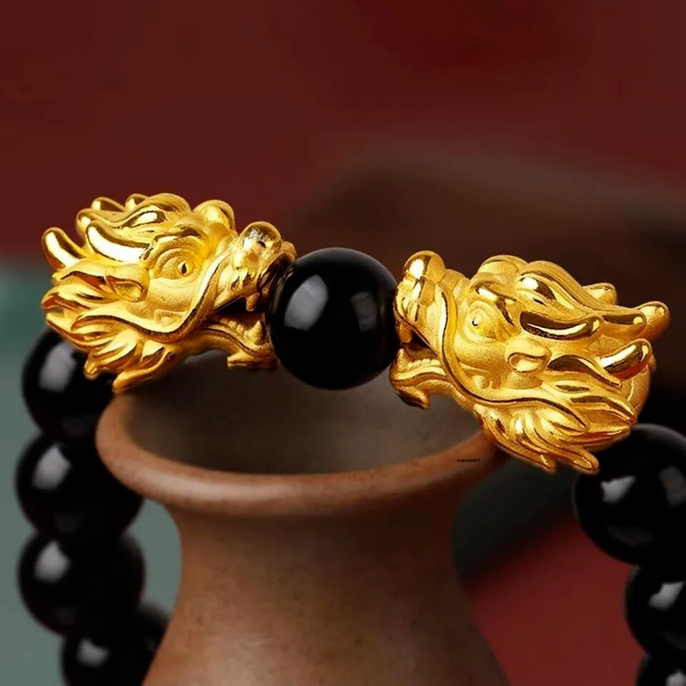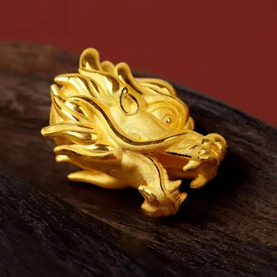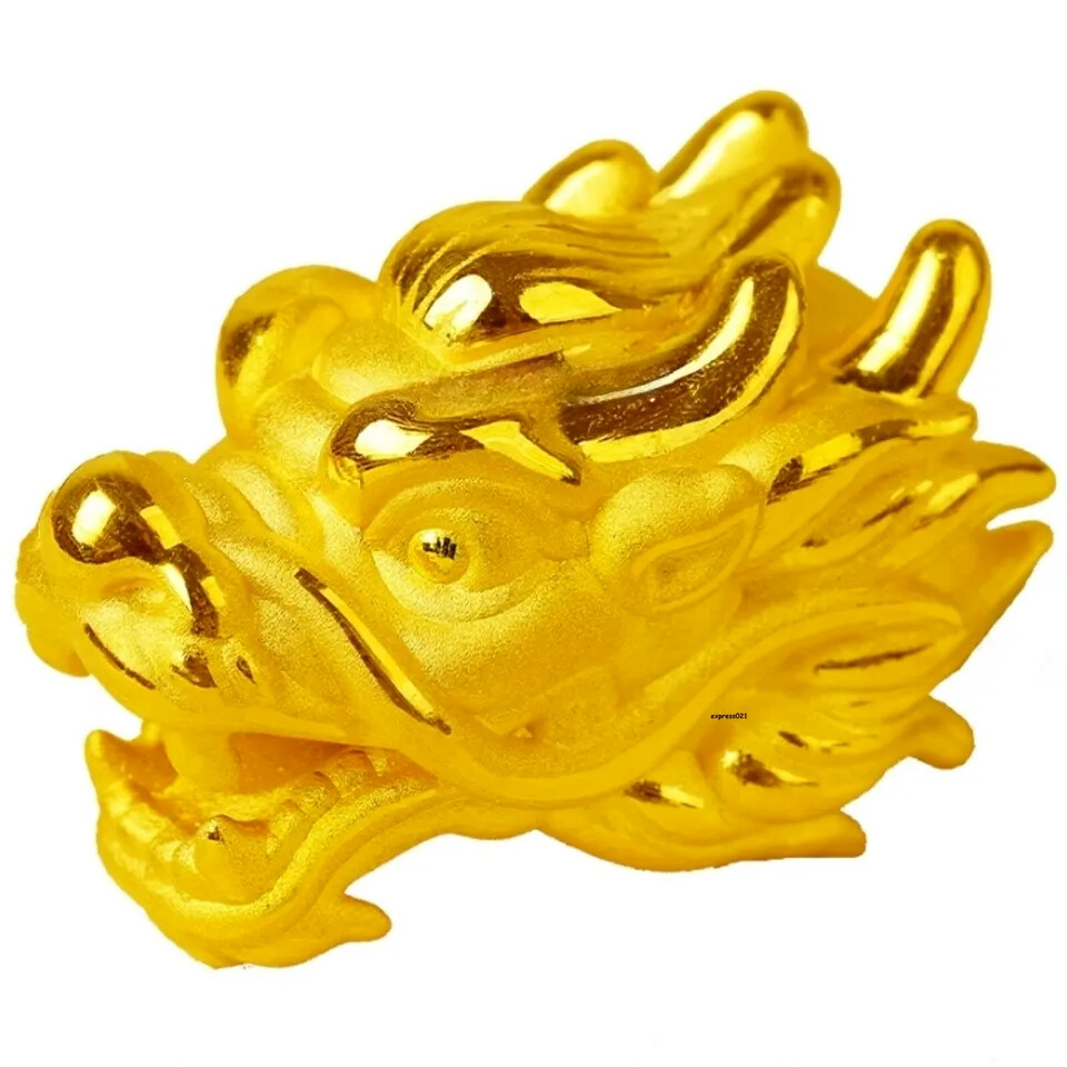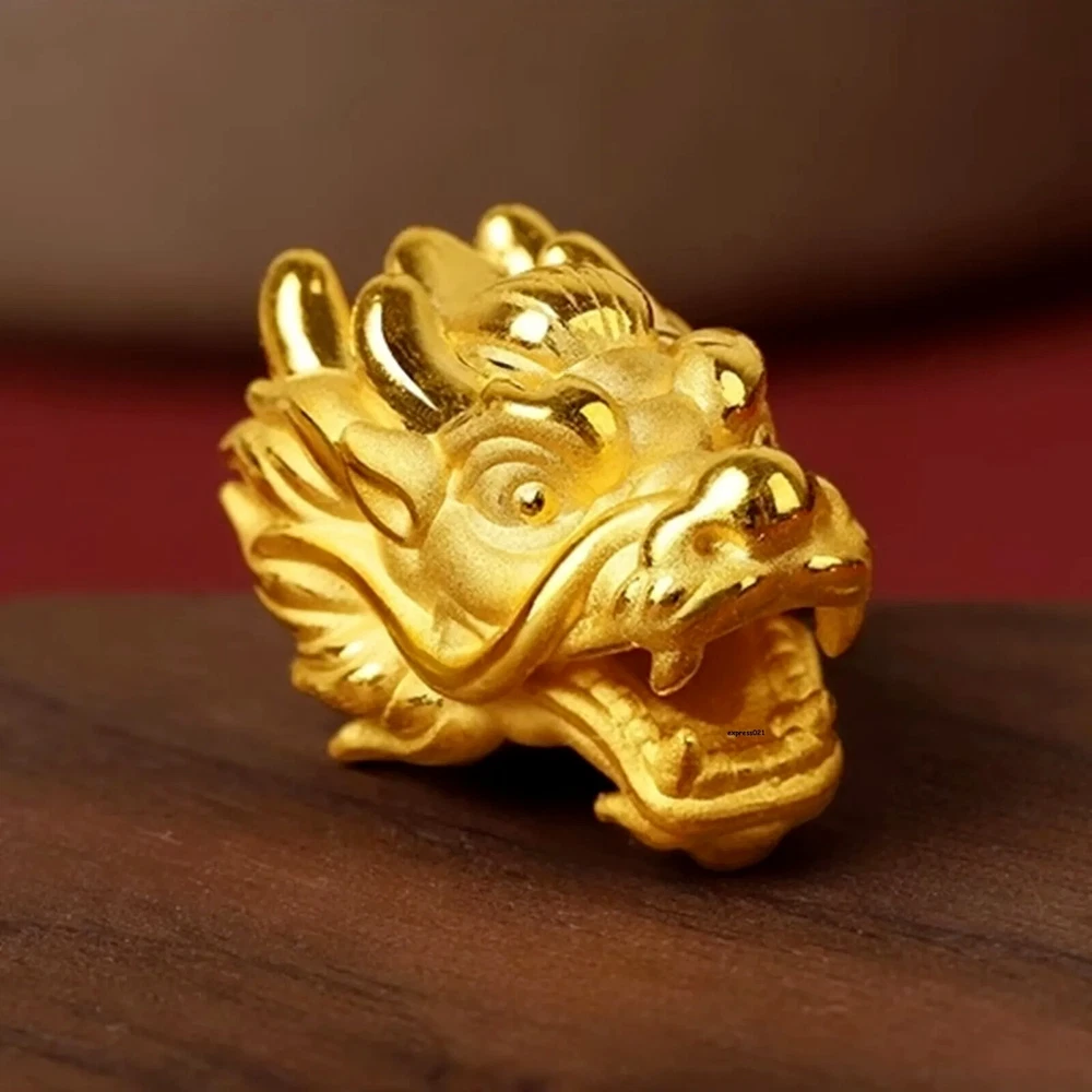 1pcs Pure 999 24K Yellow Gold Men Women Lucky 3D Dragon Head Pendant 1-1.2g