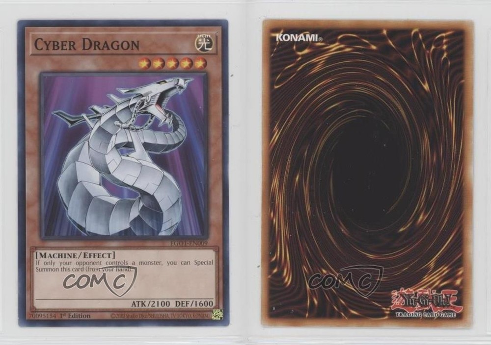 2021 Yu-Gi-Oh! Egyptian God Deck: Obelisk the Tormentor - [Base] - 1st Edition #EGO1-EN009 Cyber Dragon COMC Item: 230846771 - YuGiOh Card - Featuring Cyber Dragon Search for more: 2021 Yu-Gi-Oh! Egyptian God Deck: Obelisk the Tormentor Search for more: 2021 Yu-Gi-Oh! Egyptian God Deck: Obelisk the Tormentor - [Base] - 1st Edition View all of our Listings Auctions Buy It Now About Us Located in the beautiful Pacific Northwest, COMC (Check Out My Cards) is the world's largest consignment service for trading card singles. More than 10,000 people have used our consignment service to list over 50 million trading cards. Find out how we can help you consign your items on eBay by contacting us through eBay messaging. COMC -- "The Safe & Easy Way to Buy & Sell" Raw Condition for Modern Cards Unless otherwise noted, raw modern cards are listed in Near Mint-Mint condition or better. A NM-MT card appears to be Mint at first glance, but upon closer inspection, may exhibit some of the following: minor print defects (e.g. roller marks, print line, dimple), minor scratches, slight edge wear, and slight corner wear. Centering is clearly visible in the images provided and does not factor into our condition assessment. Raw Condition for Vintage Cards Unless otherwise noted, raw vintage cards are listed in Excellent condition or better. An EX card may exhibit some of the following: minor rounding of corners, surface wear, print defects, light scratches, and slight edge wear/chipping. Centering is clearly visible in the images provided and does not factor into our condition assessment. Domestic Shipping Combined shipping for multiple items is available. To receive combined shipping, please ensure all desired items are in your eBay shopping cart before proceeding to checkout. eBay limits orders to 40 items per order. We automatically combine multiple orders placed on the same day. If you place multiple orders on the same day, please contact us to request a refund of applicable shipping costs. Signature confirmation may be required on invoices over $400. All cards are protected and shipped securely. International Shipping COMC offers eBay's International Shipping (EIS) for international orders under $2,500* (see country exceptions below). All duties and import fees are paid at checkout; in the rare event that there are additional import fees upon delivery, these are borne by the buyer. EIS packages route through a shipping hub in Erlanger, KY before shipping to their final destination. Please note that EIS does not allow for combined shipments. The shipping rates are determined by eBay and cannot be adjusted. *Maximum sale price exceptions: Colombia, Kuwait ($2,000); Taiwan ($1,539); Chile, Costa Rica, Guatemala, Honduras, Trinidad and Tobago ($1,000); Antigua and Barbuda, Aruba, Belize, Dominica, Grenada, Philippines, Saint Kitts and Nevis, Saint Lucia, Montserrat, Turks and Caicos Islands ($500); Dominican Republic, El Salvador ($200). Please request a shipping quote through eBay messaging for orders that exceed the maximum sale price supported by eBay's International Shipping. You will be responsible for all duties and import fees for international orders shipped outside the EIS. All cards are protected and shipped securely. Payment COMC does not accept offers on our cards through our eBay storefront. COMC utilizes eBay’s managed payments system. If you are experiencing difficulties making a payment, please contact eBay for assistance. Return Policy Returns are only accepted on the rare occasion the item is not as described. If you are making a return, please initiate the return process through eBay so a mailing label can be provided for you. Prior to listing, our expert team carefully assessed this item to represent it accurately. Please review the description and high-definition images prior to purchasing to ensure this item meets your satisfaction. We welcome you to contact us if you have further questions about this item. Trust and Integrity COMC carefully assesses each item consigned to us to prevent fraudulent items from entering the marketplace. If you believe an item offered on COMC may be fraudulent, please contact us with details so we can investigate the issue. Items we determine are outside our supported items policy may be removed. Last Modified: 6/11/2025 1:23:40 PM PDT