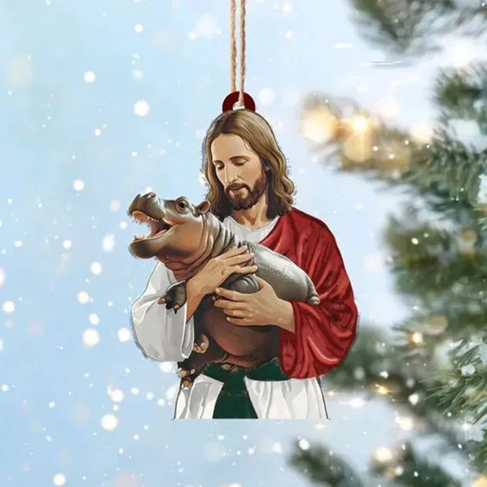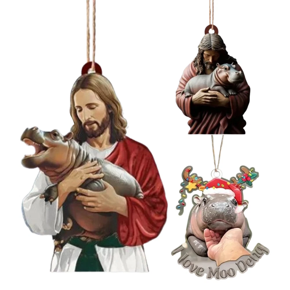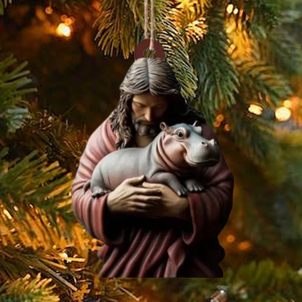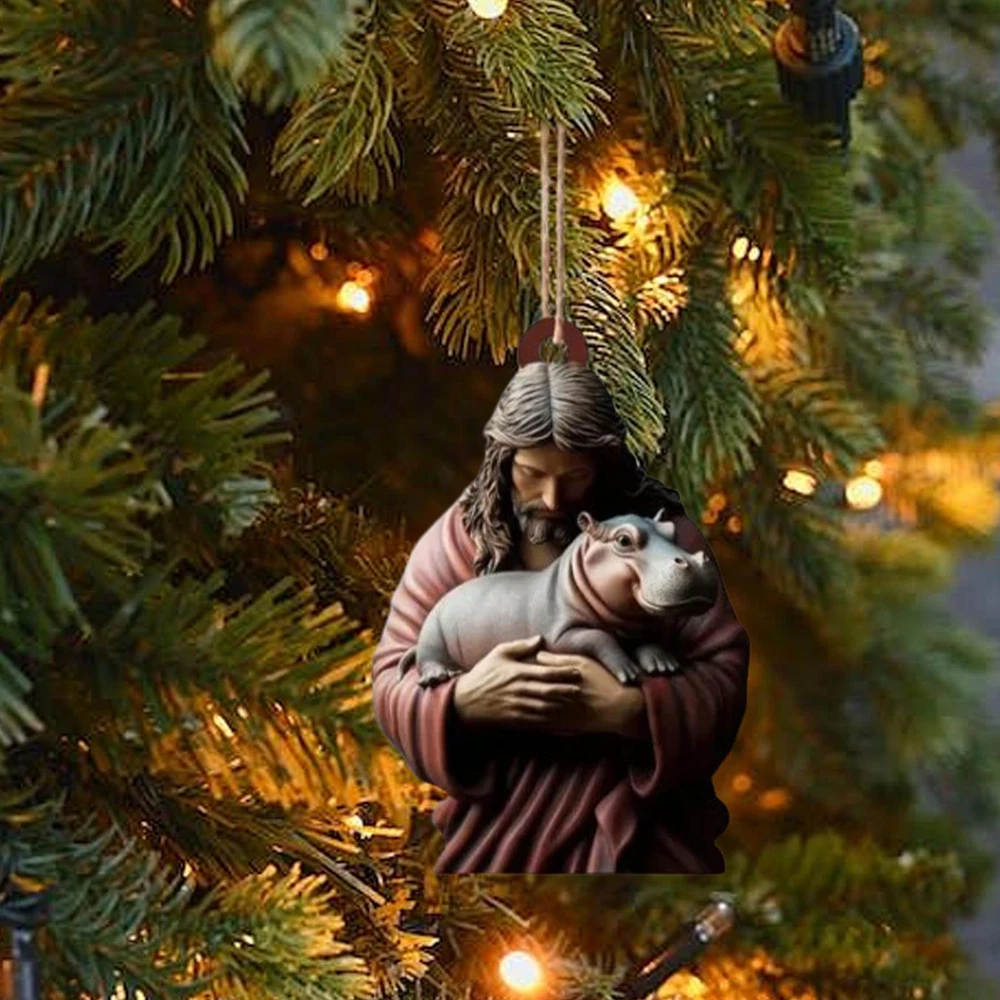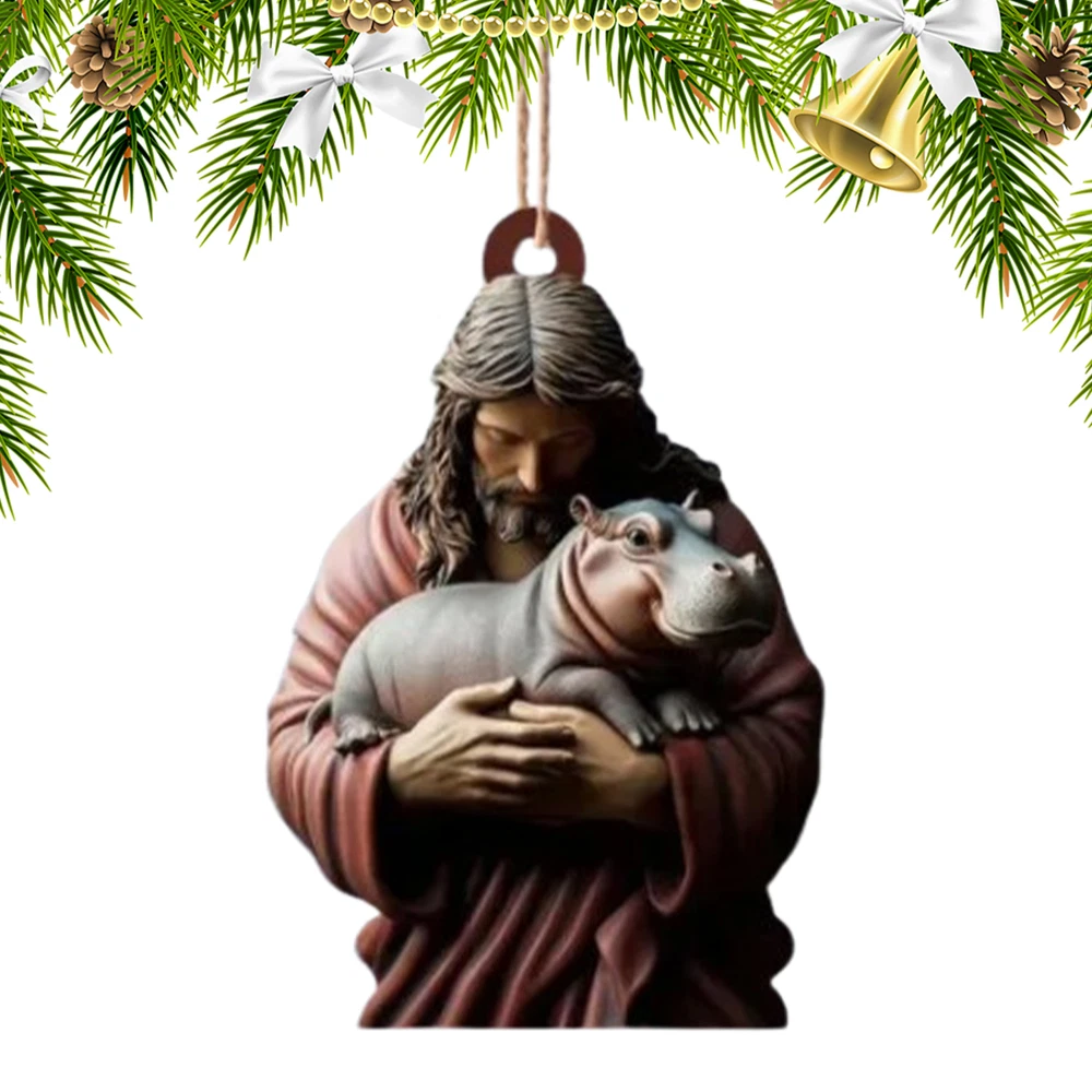 1x Christmas Ornament Jesus Hippopotamus 2d Christmas Acrylic Hanging Decoration