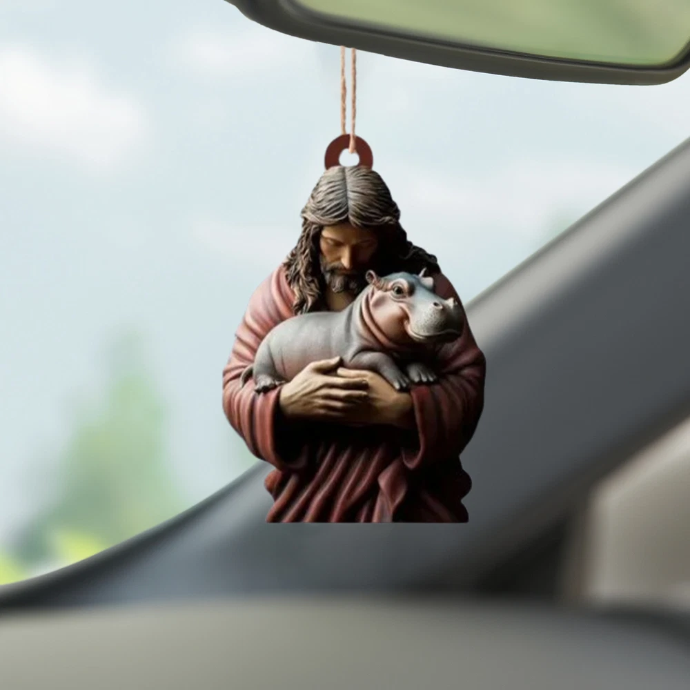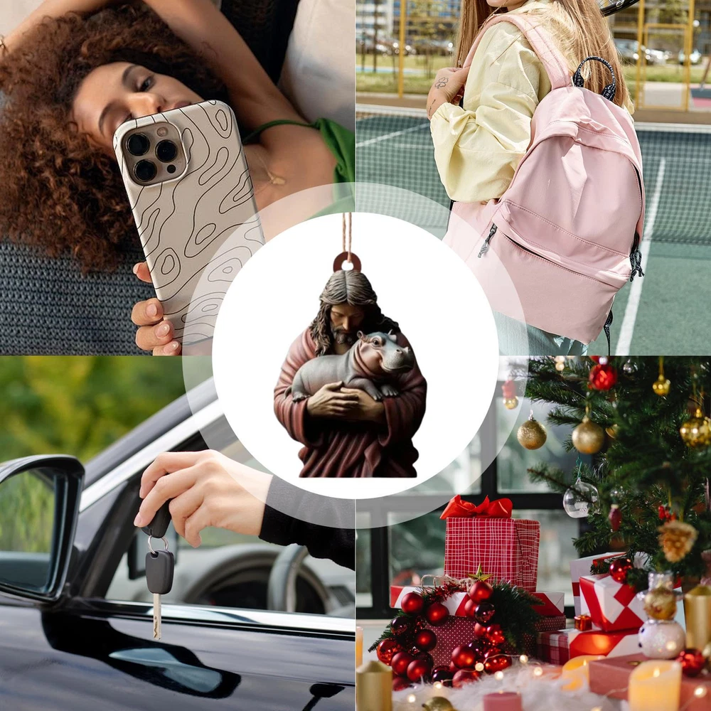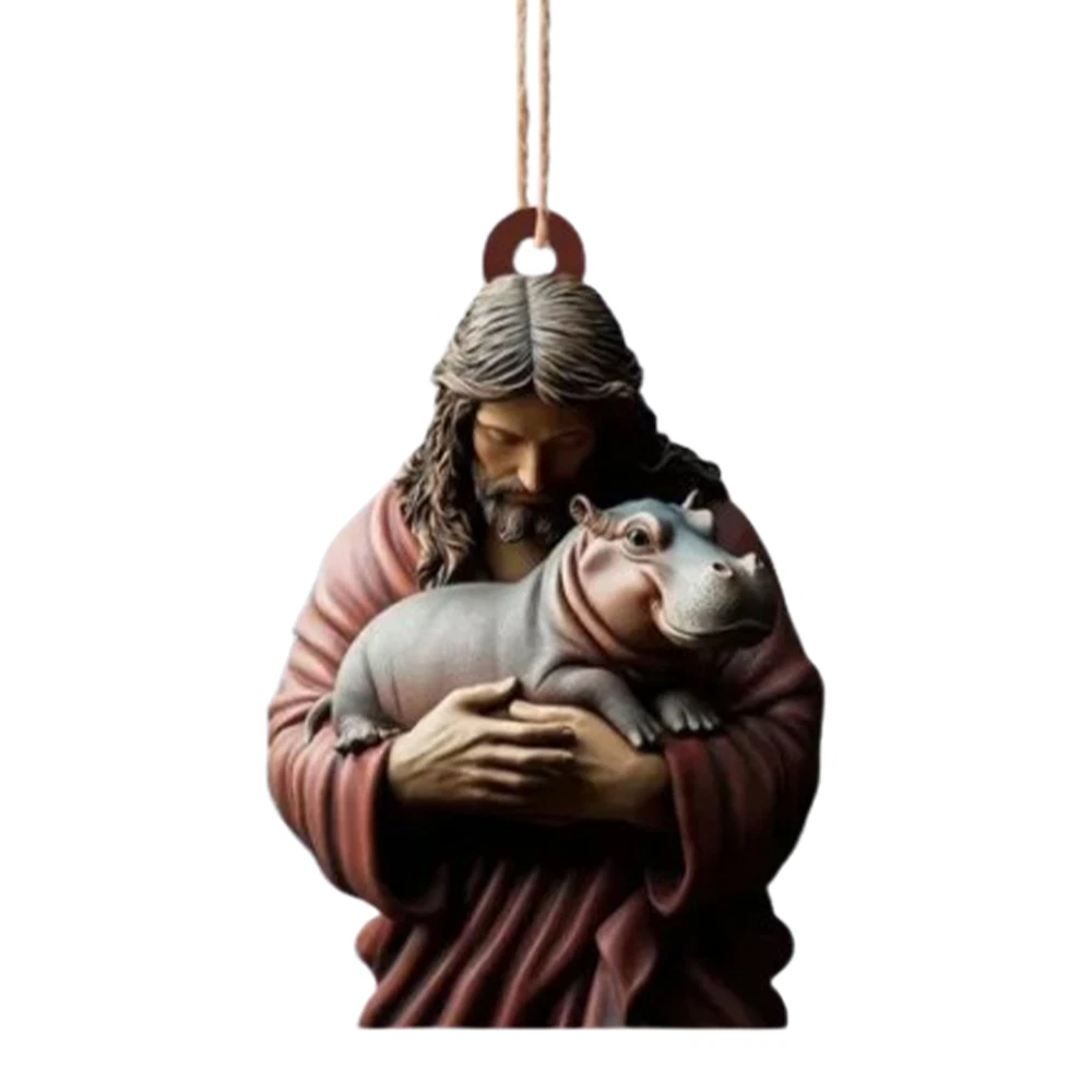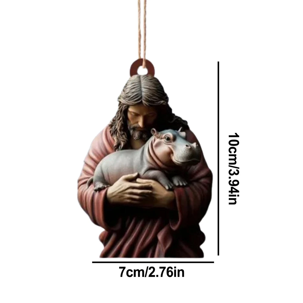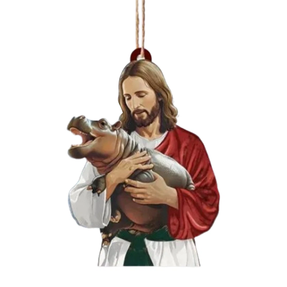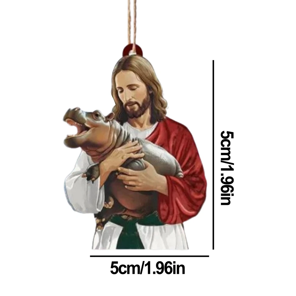 1x Christmas Ornament Jesus Hippopotamus 2d Christmas Acrylic Hanging Decoration