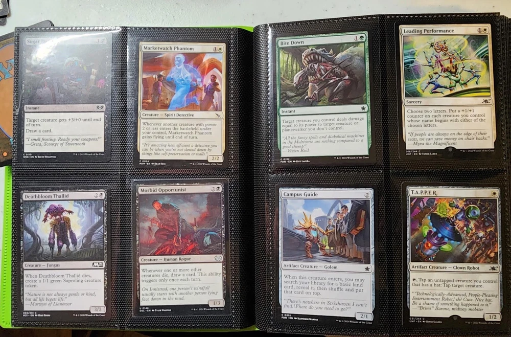 1x Filled 4-pocket [160 cards] MTG UGLY BINDER INSANE CARDS NM/LP [ID: PT5] Make sure here you don't "judge a book by its cover!" There are some cool cards inside this worn shell. Every slot filled with a card. Cards are clean, generally unplayed (pack fresh) in NM and LP condition. A rare damaged or MP/HP may slip past us and be included: check our reviews to see if this is a common occurrence. We strive for all cards to be NM/LP. Sales final, no returns. Thanks and let me know of any questions. FEEDBACK: Think we can do something better? Please let us know and share your comments with us. Thanks for stopping by! Rock Fortress Trading Binder ID: PT5