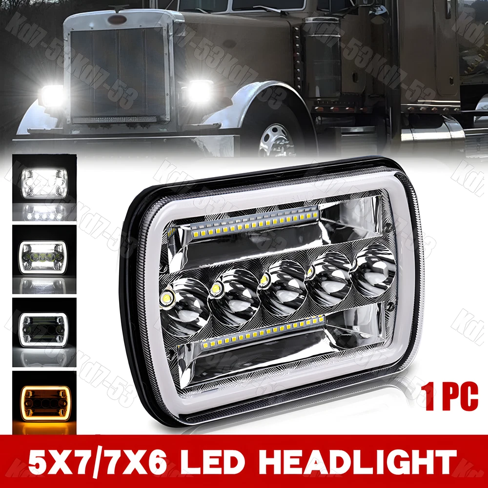 1x Square 5X7 / 7x6 inch LED Headlight lamp Hi-Low Sealed Beam For Peterbilt 379