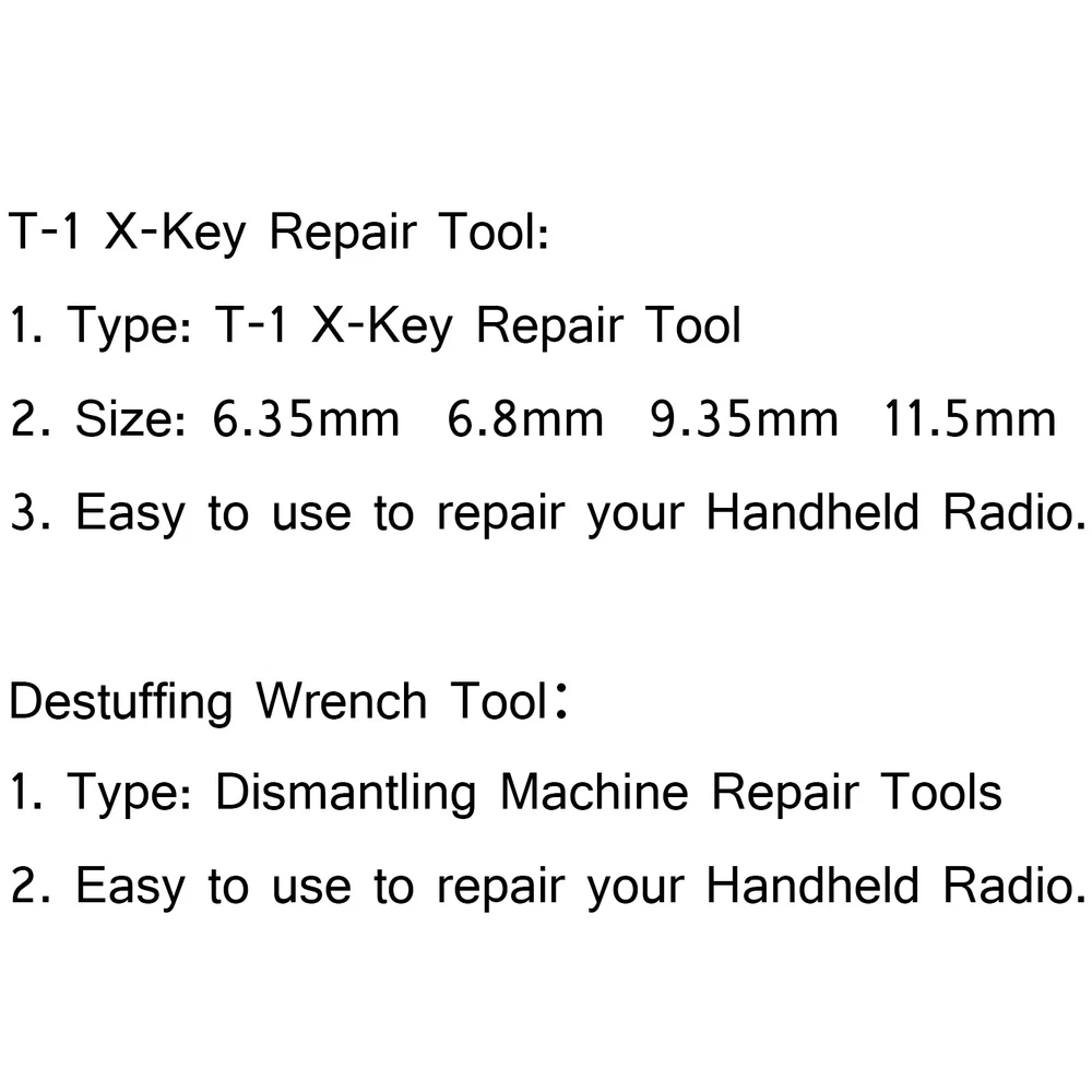 .22 to .50 Laser'Calibrator Laser Calibration Pen Red Laser Pointer Bore Sighter 16.9 USD 17.79 USD Free shipping 5% off For Samsung Galaxy S21 S22 23 Ultra Plus Anti-Spy Privacy Glass Screen Protector 10.78 USD Free shipping Fiber Optic Glock Sights For Models 17 19 22 23 24 26 27 33 34 35 38 39 45 18.8 USD 19.79 USD Free shipping 5% off 24Pcs Gun Cleaning Nylon Picks Tools Kit Rifle Pistol Clean Tool 6 Sets 13.1 USD 13.79 USD Free shipping 5% off 24" Chainsaw Saw Chain 325 pitch .058 gauge 94DL Drive Links Spare Replacement 33.13 USD 34.87 USD Free shipping 5% off Folding Back Up Iron Sight Flip Up Front Rear Set Picatinny Rail KAC300 19.83 USD 20.87 USD Free shipping 5% off DC-DC 12/24V-48V 5A 240W Step Up Car Power Supply Converter Regulator Waterproof 28.3 USD 29.79 USD Free shipping 5% off A/C Retrofit Valve & BPV31 Bullet Piercing Tap-Kit For Refrigerant 15.46 USD Free shipping HT-800 G1 Thread 220V Water Pump Flow Sensor Automatic Control Switch YU 20.7 USD 21.79 USD Free shipping 5% off 25/50/100 Grain Like Gold Tip FACT Arrow Weight Screw Combo 1dz .246 shafts FOC 13.06 USD Free shipping RC3563 Battery Voltage Meter Internal Resistance Voltage Tester Detector 33.92 USD 35.7 USD Free shipping 5% off 70MM Steering Wheel Adapter Plate For Logitech G29 G920 13/14inch Steering Wheel 10.78 USD Free shipping 1310082 Pinion Return Spring Fits For Delta and Rockwell Drill Presses 22.87 USD Free shipping Waterproof Washing Machine Top Dustproof Cover Protect Front Load Washer Dryer 17.67 USD Free shipping Infrared Thermal Imaging Camera IR Imager USB Type-C For Android Mobile Phone 76.83 USD 80.87 USD Free shipping 5% off 3D Printer Durable Extension Cable kit fit for CR-10/CR-10S Series 3D Printer YU 27.99 USD Free shipping A Fantastic Shop Send us a message Our Store Seller Profile Feedbacks Save this seller Contact 1x T-1 X-Key Repair Tool + Destuffing Wrench Tool Fit For Kenwood UV-5R UE 100% Brand new and high quality. Product Shape: Same as the picture show T-1 X-Key Repair Tool: 1. Type: T-1 X-Key Repair Tool 2. Size: 6.35mm 6.8mm 9.35mm 11.5mm 3. Easy to use to repair your Handheld Radio. 4. Compatible with most of the Handheld Radios in the Market. 5. Compatible with models: Baofeng UV-5R 888S Wouxun TYT Two-way Radio Destuffing Wrench Tool: 1. Type: Dismantling Machine Repair Tools 2. Easy to use to repair your Handheld Radio. 3. Compatible with most of the Handheld Radios in the Market. 4. Compatible with models: Kenwood GP328 GP88 GP300 BaoFeng UV-5R 888S HYT Package Included: 1Set (1Pcs T-1 X-Key Repair Tool + 1Pcs Destuffing Wrench Tools) About US About Our Items We strive to describe all items accurately and thoroughly, with the utmost care and attention to detail. However, to ensure a mutually satisfactory transaction, we kindly ask for your assistance in thoroughly reviewing the item description and photos, and addressing any questions before placing a bid. Customer Satisfaction We stand behind our commitment with exceptional service, a 100% money-back guarantee, and a dedication to customer satisfaction. I am readily available to address any inquiries or concerns you may have, both before and after your purchase. Our aim is to ensure your shopping experience is enjoyable and that you're delighted with your purchase. Feedback Your feedback is crucial to our business's success. If you're satisfied with your purchase and the service you received, we would greatly appreciate your positive feedback, along with an overall Detailed Selling Rating (DSR) of 5. Please take a moment to leave us positive feedback. Our eBay account is set up to automatically reciprocate positive feedback once yours is received. If you're considering leaving neutral/negative feedback or opening an eBay/PayPal case, we encourage you to reach out to us immediately. We're committed to resolving any issues to the best of our ability. Shipping Parcel will be shipped using Standard shipping method. For security purposes, items will be shipped exclusively to the confirmed address on Paypal. Please ensure your Shipping address is up to date before proceeding with payment. Estimated delivery time within the United States ranges from 3 to 10 business days, depending on your location. Returns We accept returns within 60 days from the date the buyer receives the item. If the item is found to be defective upon receipt, the customer has up to 30 days from the date of receipt to request an exchange for a new item or a refund. For returns due to a change of mind, we accept items in their original selling condition. However, if the package has been opened due to a mistaken order, it does not qualify for our return policy. Please note that the buyer is responsible for covering the cost of return postage. If you encounter any issues, please reach out to us via eBay message, and we'll respond within 24 hours. Car Walkie Talkie Panel Mount Bracket For Ft-7900R Ft-7800R Ftm-100Dr Radio Blk\ 10.78 USD Free shipping B Programming Cable OPC-1122 U Fr ICOM Car Mobile Radio IC-F110 IC-F111 US 14.05 USD 14.79 USD Free shipping 5% off 1Pcs Programming Cable For Vertex Radio VX-530 VX-600 VX-800 VX-4000/5500 21.79 USD Free shipping 5 pcs B Programming Cable OPC-1122 U For ICOM Car Mobile Radio IC-F110 IC-F111 38.87 USD Free shipping Ft8900 Panel Bracket For Ft-8800 Ft-8800R Ft-8900 Car Mobile Two Way Radio Black 10.79 USD Free shipping 10pc Metal Belt Clip Fit Kenwood TK-208/308 TH-22AT TH-42AT BF-888S/666s/777S 12.76 USD 13.43 USD Free shipping 5% off 1Set Programming RIB Radio Interface Box For Radio As RLN4008 HT1000 UE 27.78 USD Free shipping 1x Soft Leather Case For YAESU VX-6R VX-7R VX-7E Two-Way Radio Walkie Talkie 13.79 USD Free shipping 1x/5x Walkie Talkie Two Way Radio Communicator Zs-B1 Belt Clip For Rt22 Rt622 UE 9.87 USD Free shipping PTT Walkie Talkie Launch Button Plastic Frame For XIR P3688 DEP450 DP1400 CP200d 9.2 USD 9.79 USD Free shipping 6% off 5X Back Pocket Clip Belt Clip Fit ICOM IC-V88 IC-U88 IC-F1000 Walk