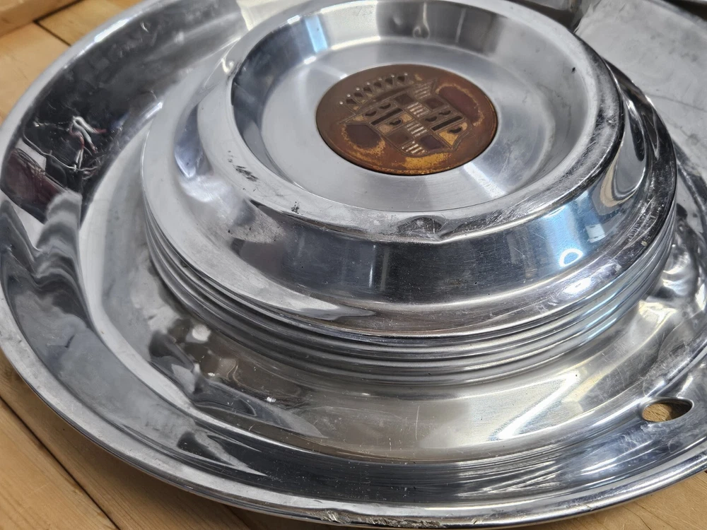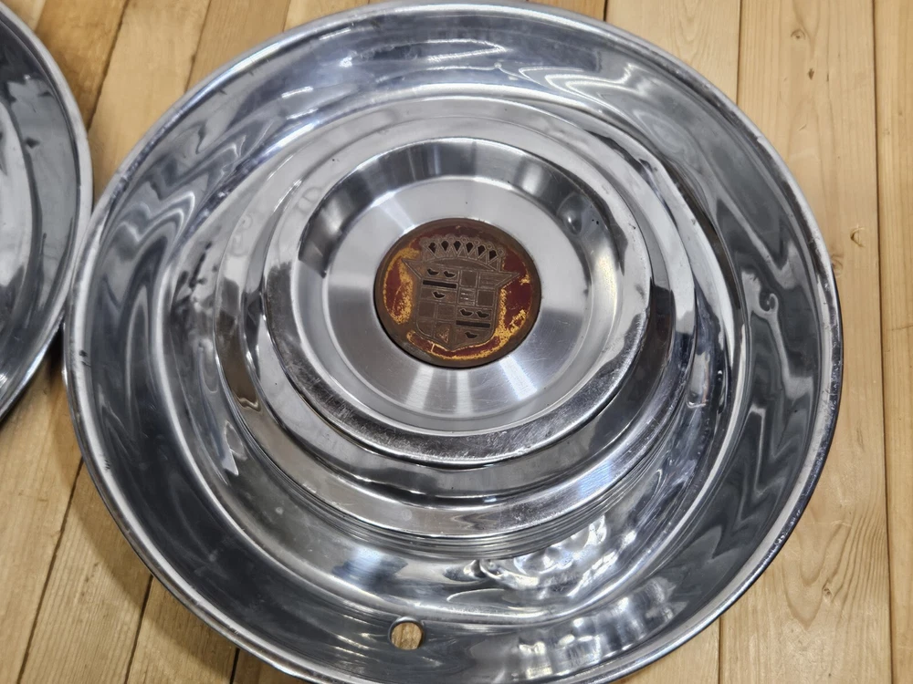 CADILLAC DEVILLE 1950'S VINTAGE HUBCAPS DENTS AND BLEMISHES. PLEASE SEE ALL PICS. SHIPPED WITH USPS WE PACKAGE AND SHIP SAME OR NEXT BUSINESS DAY. MULTI-LAYER PACKAGING TO PROTECT YOUR PURCHASE ALL PHOTOS OF ACTUAL ITEM 🌲🌲🌲@MYRAGGS🌲🌲🌲 SEARCH OUR OTHER LISTINGS!! WE MAY HAVE WHAT YOU'RE LOOKING FOR. WE CONTINUALLY SOURCE UNIQUE AND INTERESTING ITEMS. BOOKS TOYS TOOLS DOLLS SHOES BOOTS CHRISTMAS ORNAMENTS & DECORATIONS FIGURINES CRYSTAL DISNEY STARBUCKS MUGS MASKS AND FLASKS PHOTOGRAPHY COIN & STAMP COLLECTING PHILATELIC NUMISMATIST CLOTHING MAGAZINES DUNGEONS AND DRAGONS SWAROVSKI BIRTHDAY WEDDING VALENTINES GRADUATION GIFTS AND MUCH MUCH MORE. CLASSIC AMERICAN CAR PARTS CADDY CROWN MISS CENTURY AUTOMOBILE MAN CAVE DECOR GARAGE COLLECTIBLE UPCYCLE ART AMERICANA