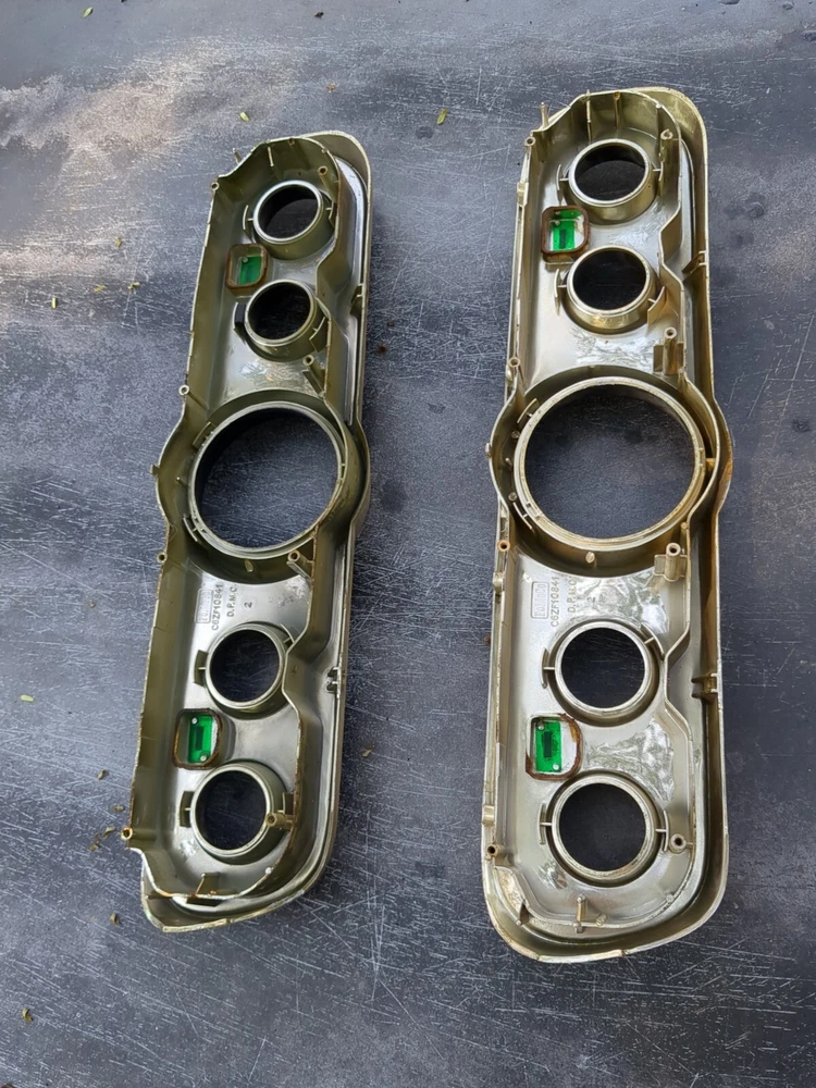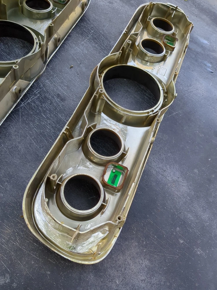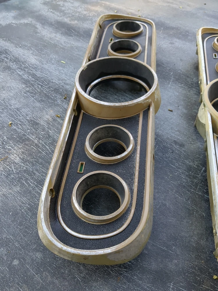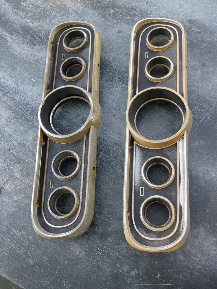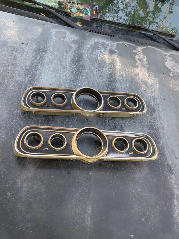 2 for the price of one! Definitely needs to be repainted but great structural integrity and no cracks, not dried up. One does have a cracked screw hole but the other one is perfect except paint. This vintage gauge bezel instrument cluster for a 1965-66 Ford Mustang is a rare find for any car enthusiast. With its original and authentic design, it is the perfect addition to any restoration project. The gauge is in great working order and has been well-maintained for its age. The cluster is designed for individual gauges and has a unique style that is both classic and timeless. It is compatible with a variety of vehicles and is sure to impress any collector. The part number for this item is C6ZF10841 and it is a vintage part that has been carefully preserved. Don't miss out on the opportunity to add this rare find to your collection!