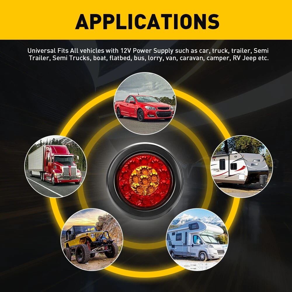 Specification Material: ABS & Rubber Voltage:12V-24V Waterproof grade:IP67 Service life: 50000H+ Light color: Red(10 leds),amber(6 leds) LED quantity: 16 LEDs per unit Universal for: Trucks, trailers, tractors, semi-trailer, Dump Truck, bus, boat, special vehicle, and etc. Features: *High brightness: Adopts 16 pieces of advanced LED lamp beads glowing brightly but not dazzlingly. 100% Brighter than halogen bulbs but more Energy-saving. *Waterproof: The tail light is highly silicon sealed with an IP67 waterproof rating, which works even under extreme conditions such as rain and snow. *Easy to install: 2* 4inch Round Red 16-LED Amber Truck Brake Trailer Stop Turn Signal Tail Lights Specification Material: ABS & Rubber Voltage:12V-24V Waterproof grade:IP67 Service life: 50000H+ Light color: Red(10 leds),amber(6 leds) LED quantity: 16 LEDs per unit Universal for: Trucks, trailers, tractors, semi-trailer, Dump Truck, bus, boat, special vehicle, and etc. Features: *High brightness: Adopts 16 pieces of advanced LED lamp beads glowing brightly but not dazzlingly. 100% Brighter than halogen bulbs but more Energy-saving. *Waterproof: The tail light is highly silicon sealed with an IP67 waterproof rating, which works even under extreme conditions such as rain and snow. *Easy to install: Easy installation with direct replacement, other modifications are not required. *Connection Black wire connects to negative. Red wire:Braking light (Red light with high brightness) Blue wire:Driving light(Red light with low brightness) Yellow wire: Turn signal light(Amber light) *Functions Tail Light, Running Light, Stop Light, Turn Signal Light, etc. *Wide application: Universal Fits All vehicles with 12V Power Supply such as car, truck, trailer, Semi Trailer, Semi Trucks, boat, flatbed, bus, lorry, van, caravan, camper, RV Jeep etc. Note: Please check the detail information carefully before purchasing. Your satisfaction is our utmost concern, please feel free to contact us for any questions and concerns. Package Include: Tail light*2 Item Specifics Brand : AUXITO Placement on Vehicle : Rear, Left, Right, Outer, Bed Type : Rear Tail Lights/Brake Lights Bar Manufacturer Part Number : Does Not Apply Voltage : 12V Color : Red Brake Light Amber Turn light Fitment Type : Performance/Custom To Fit : Tail Lights Material : ABS Housing ++ PC Lens Lighting Technology : LED Applications : Universal For Any 12V Vehicles Heavy trucks LED Type : 16 Lighting Type : Trailer Lights Waterproof : IP67 Position 1 : Stop turn tail brake marker Clearance Light Position 2 : 3rd brake Light, ID Bar Light Widely used : Trucks, trailers, tractors, semi-trailer Widely used 1 : Dump Truck, bus, boat, special vehicle Widely used 2 : Dump Truck, bus, boat, special vehicle Widely used 3 : Cab Rails ORV Golf Cart Freightliner Widely used 4 : Bus semi-trailer motorhome tractors Dump Truck Widely used 5 : travel trailer, boat trailer, horse trailer Widely used 6 : camper trailer, cargo trailer etc. Payment (1) Instant PayPal payment is the preferred method of payment. (2) We also accept payment via PayPal, DebitCard, Visa, MasterCard, Discover. (3) We will only ship to the confirmed PayPal shipping address given with the payment. (4) If you want to ship to other address, please change your PayPal shipping address before you make payment. (5) To avoid initiating an unpaid item claim, please pay within 7 days. Shipping (1) We will ship your item(s) within 24 hours. (2) We ship this item to US usually via USPS first class mail. It usually takes 3-6 working days to deliver. Returns (1) We offer free return & money back guarantee. If you are not satisfied with your purchase for any reasons, you can return the item for refund or replacement/exchange. All returns must include the original packaging. (Please refer to our return policy for details.) (2) If you don't return goods within 60 days from date of purchase, your right to cancel will be revoked. Any items damaged because of incorrect installation will not be refunded. Please contact us for return or troubleshooting help prior to returning any products. (3) Unauthorized reselling of AUXITO products is strictly prohibited and we can't honor the warranty if purchasing from the unauthorized reseller. Contact Us [Our office hours are MONDAY - Saturday 9:00PM - 6:00PM PST, but we will response you once we get your message .There will be some delay on respons if you send message or E-Mail on Sundy.] (1).Negative feedback will not help resolve any problems you have, please contact us via eBay messages before leaving negative feedback, our customer service will make best effort to help you with the issues. (2).We maintain high standards of excellenceand strive for 100% customer satisfaction! Feedback is very important to us. We request that you contact us immediately BEFORE you give us neutral or negative feedback, so that we can satisfactorily address your concerns. FAQ Why swith to LED? LEDs not only give your vehicle a clean, modern look but, with proper use, will outlast any halogen bulb and HID bulb! Low energy draw, high lumen output, and instant on/off LED technology out shines stock bulbs in every way. Which bulbs are used in my vehicle? Check Sylvania automotive lamp replacemnt guide, you can select the year, make, and model of your vehicle, then select the application you want to replace or upgrade from stock. What does CAN Bus mean? CAN Bus means Controller Area Network Bus. This system monitors your vehicle and reports operating conditions. CAN Bus systems are commonly found in European vehicles such as BMW, Audi, Mercedes, Volkswagen, Porsche, and in many American vehicles. While most late model American vehicles have CAN Bus systems, it is always good to check with your vehicle dealer to see which system your vehicle has before purchasing electrical products. When do you need Warning Canceller? Some vehicles with cmplex internal computers(such as Audi,BMW,Jaguar,Mercedes,etc.) might report on