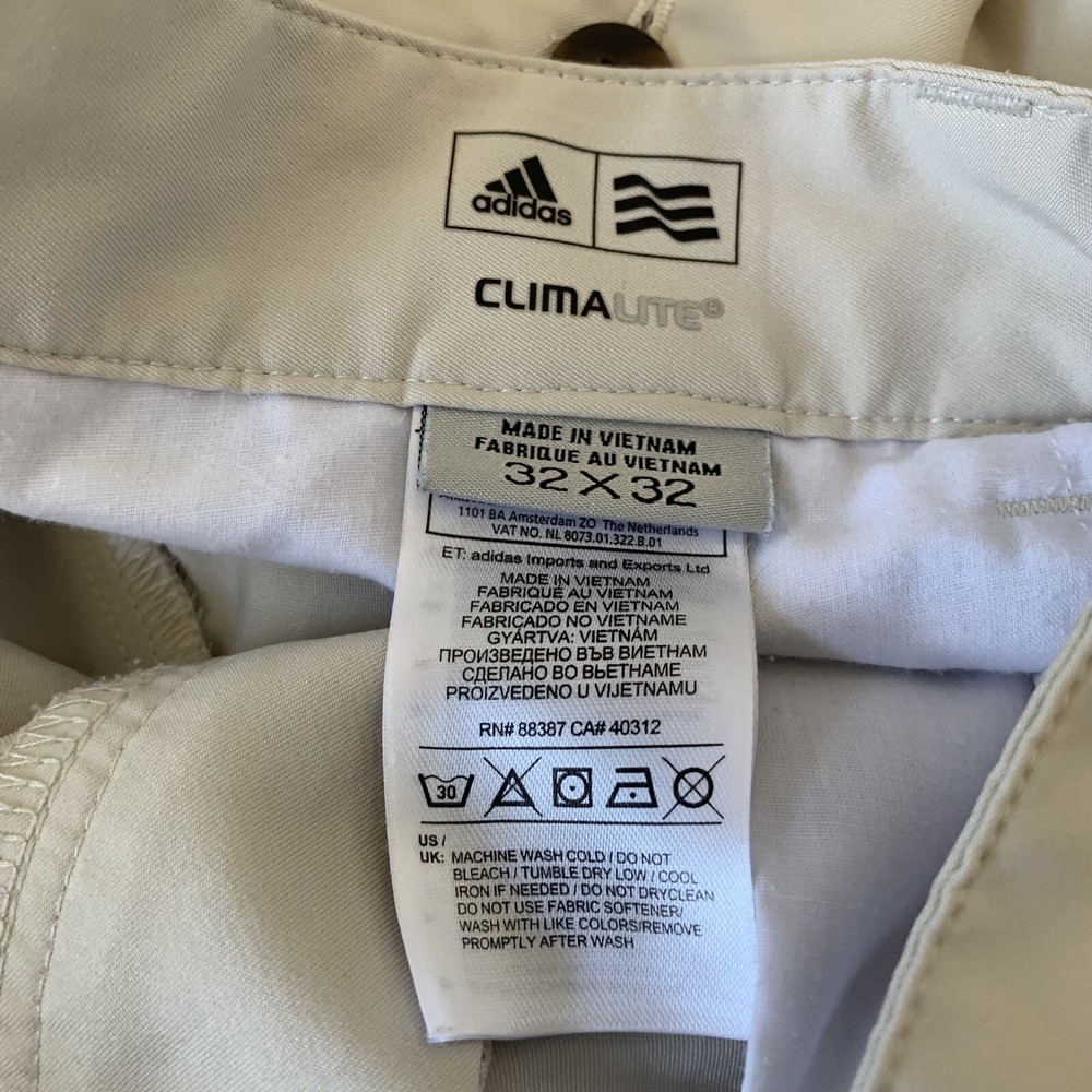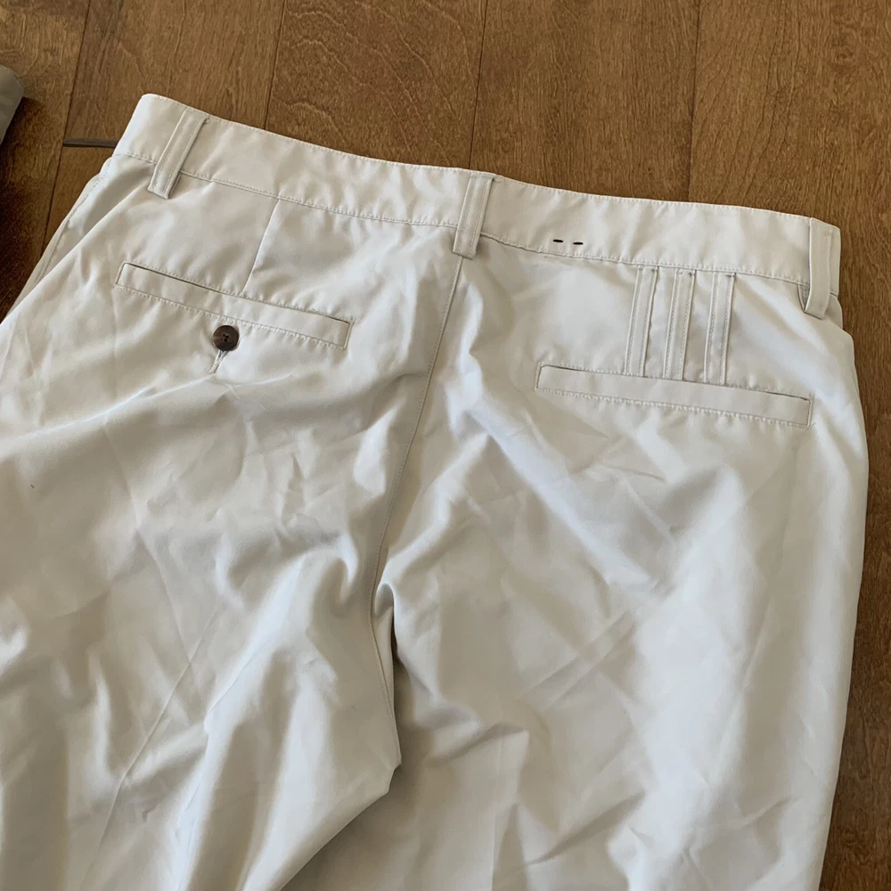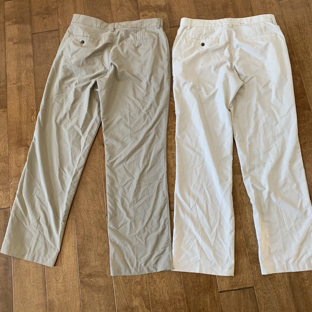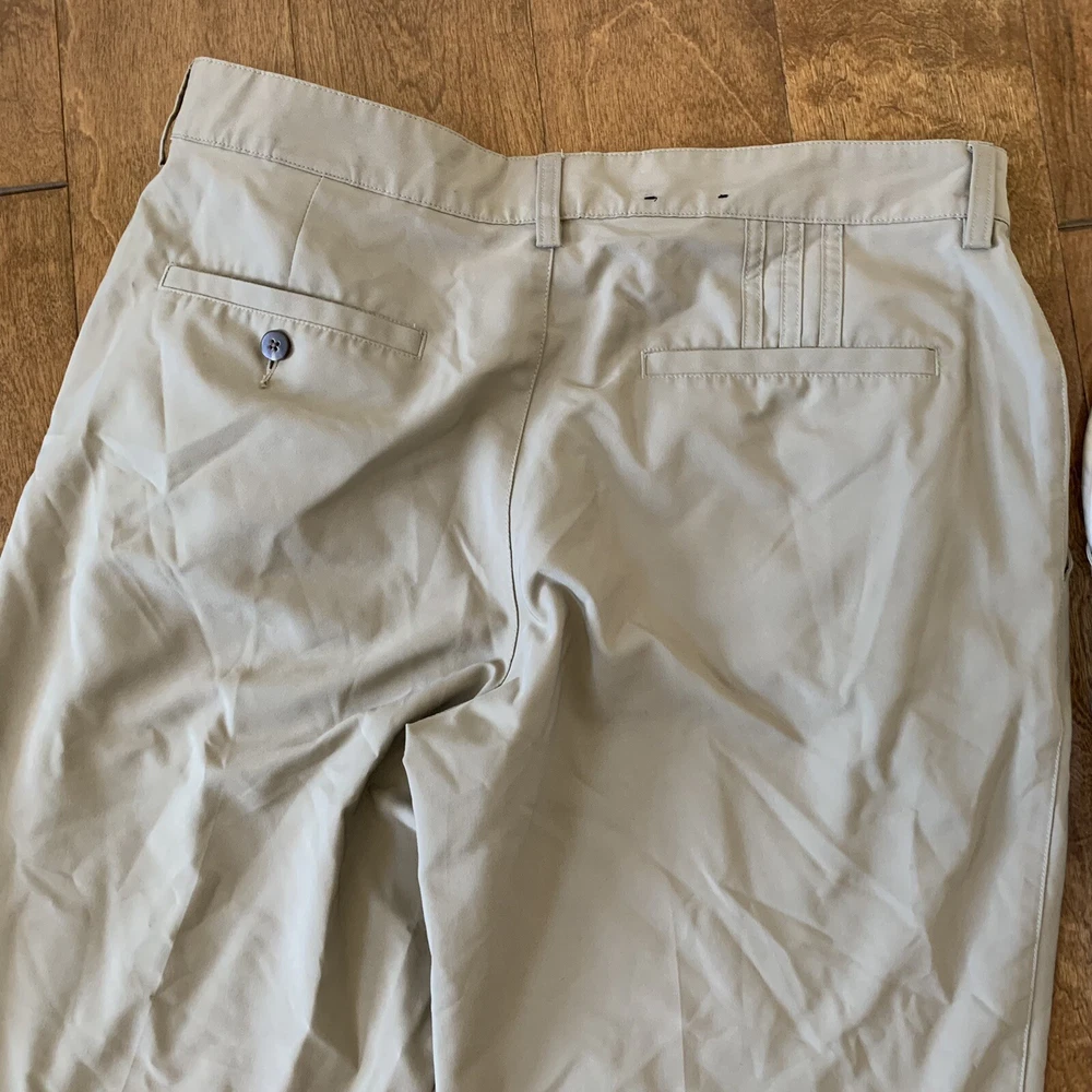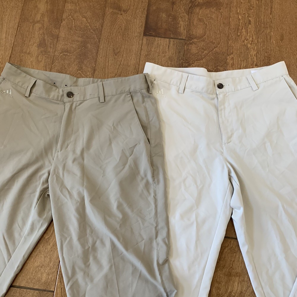 2 Adidas Golf Pants Men 32 x 32 Beige Flat Front ClimaLite Polyester Quick Dry is in great condition and clean. Please see the photos for more details. B