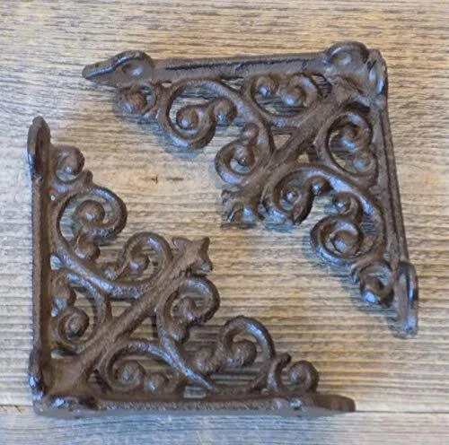 2 SMALL CAST IRON BRACKETS! NEW MADE TO LOOK OLD! EACH BRACKETS MEASURES APPROXIMATELY 3 7/8" FROM TOP TO BOTTOM AND EXTENDS APPROXIMATELY 3 7/8" FROM THE WALL! MOUNTING SCREWS NOT INCLUDED! 2 SMALL CAST IRON BRACKETS EACH BRACKET MEASURES APPROXIMATELY 3 7/8" FROM TOP TO BOTTOM AND EXTENDS APPROXIMATELY 3 7/8" FROM THE WALL! NEW MADE TO LOOK OLD!