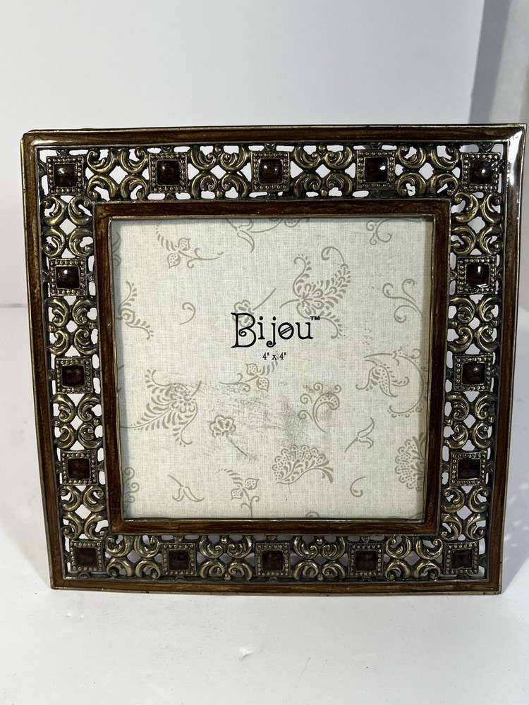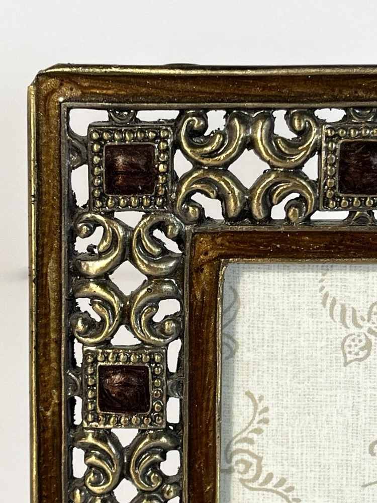 Set of two beautiful enamel embellished picture frames. Very ornate. Backs are felt easel style. One frame is 4” x 6” and the other is 4” x 4”. In excellent condition. Ships the next business day after payment😊