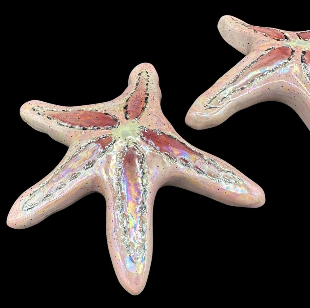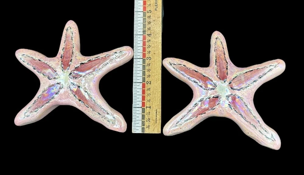 2 Blue Sky Clayworks Starfish Pink Wall Decor Sea Life Beach Ocean Y2K 2000 Vtg Crazing on the backs. A little crazing on the fronts. See pics. Approximately 5” wide.