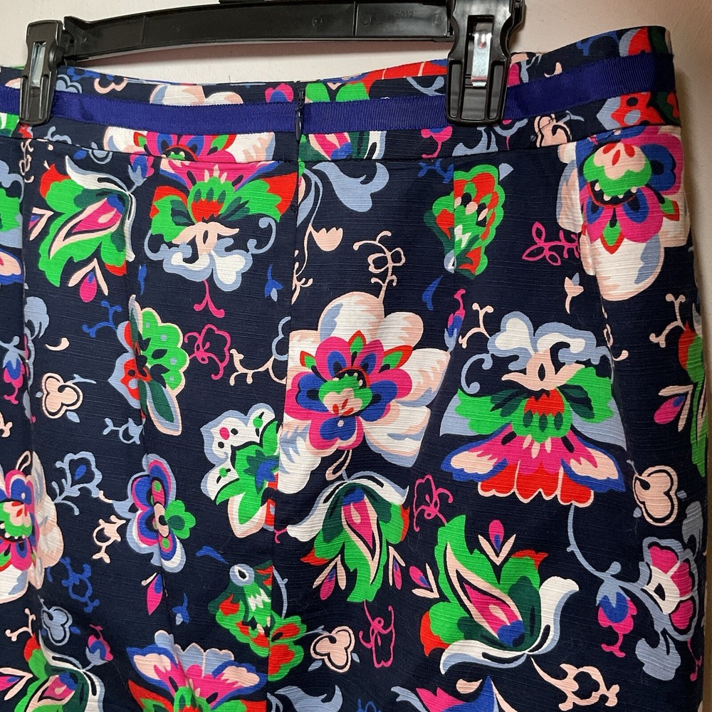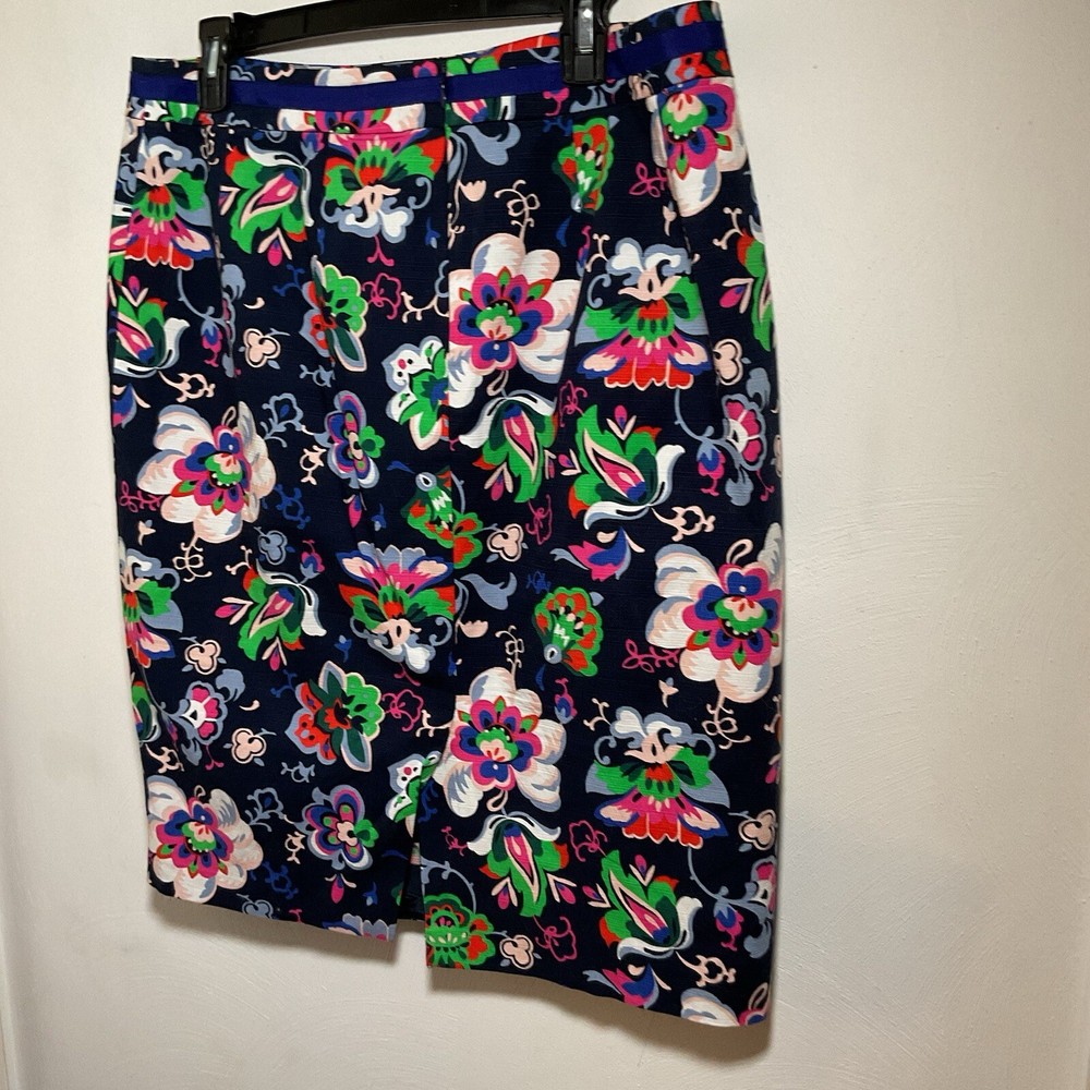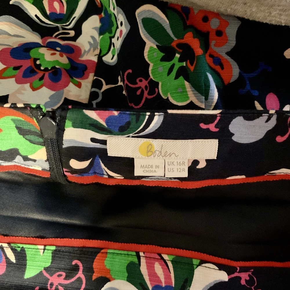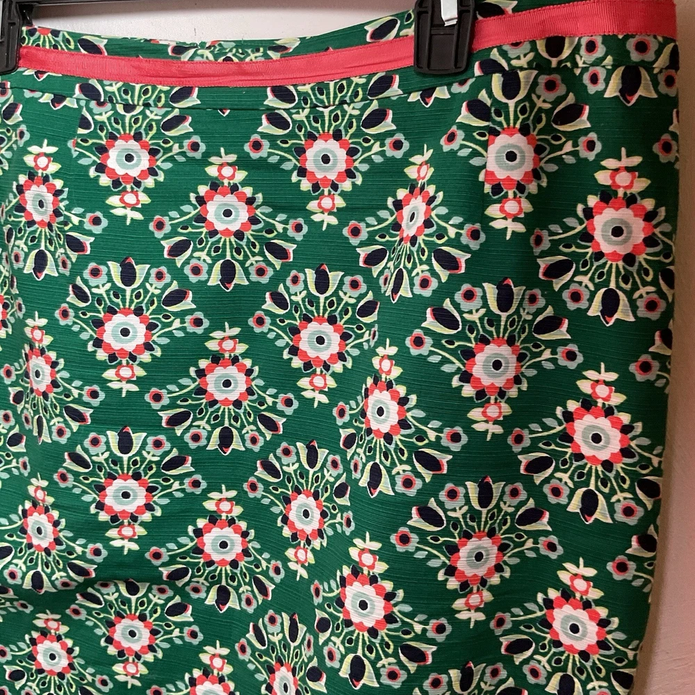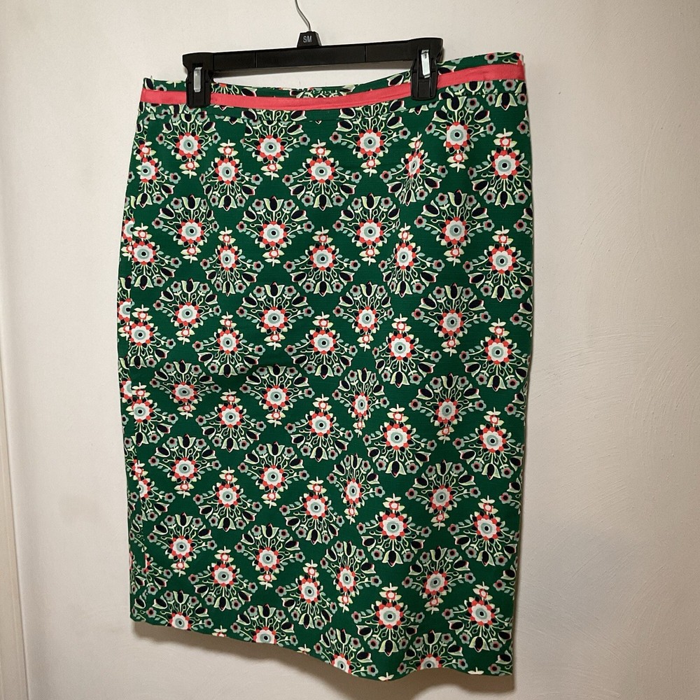 The Boden Professional Pencil Skirts in blue and then in green floral are stylish and versatile addition to any woman's wardrobe. Made from a comfortable cotton blend material, the skirts features a floral pattern and a ribbon accent for added flair. The knee-length straight and pencil style is perfect for various occasions, from casual outings to business meetings. The skirts are machine washable and suitable for all seasons, making them practical and fashionable choices for any size 12 woman looking for vibrant and classic pieces.