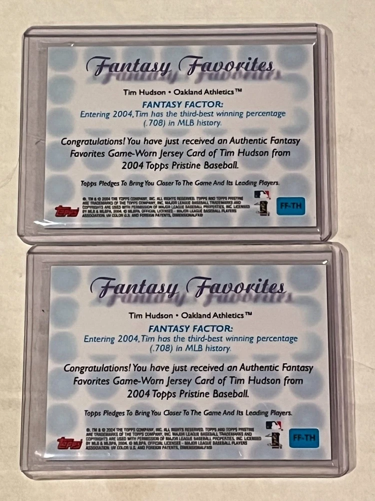 2 CARD LOT - 2004 Topps Pristine Fantasy Favorites Relics Tim Hudson #TH Oakland Athletics Your cards will be delivered in a penny sleeve and a toploader