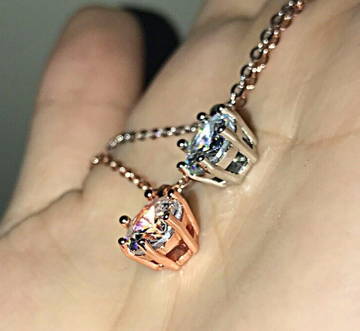 Shiny Round Simulated Diamond Rose Gold Plated Dainty Necklace For Women, EVGG1075 ✅ Necklace Length: 18 Inch ✅ Metal: Rose Gold Plated over High Quality Brass ✅ Stone: Simulated Diamond ✅ High Quality Material ✅ Hand Crafted with love and care ✅ Perfect for gift, holiday, Christmas, birthday, vacation, Mother's day, Valentine's day, wedding, engagement , bridal, promise, anniversary, party ✨ Please feel free to message me if you have any questions. ✨ Thank you..!!