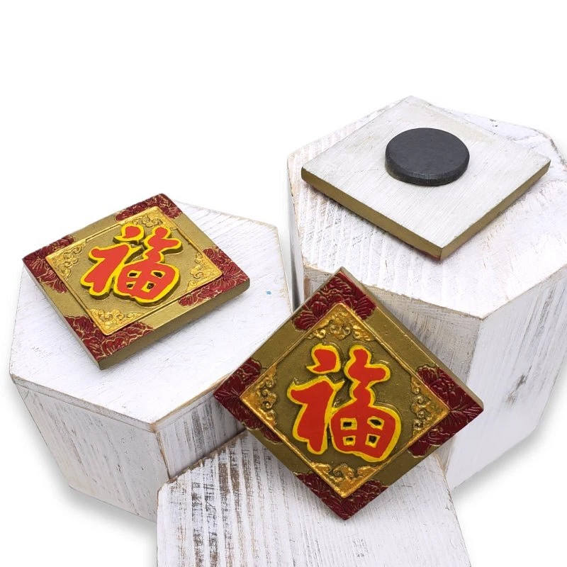 Set of Chinese New Year or Wedding Souvenir Magnet Another traditional Chinese character magnet "Fu" means Good Luck or Fortune. A common wedding present for newlyweds in the country or simply a gift for Chinese New Year. This makes it an amazing choice for your fridge magnet souvenir collection comes with a lot of good memories and luck. Get yours now! Color: red/multi Dimensions: 3''L x 3''H Material: resin, magnet Very cool souvenir magnet with three-dimensional feels to it Attach right on your fridge or any magnetic surface. Perfect for wedding gift or party favors Great addition to your souvenir collection
