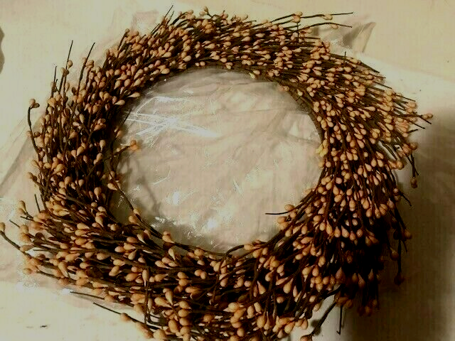 Here are 2 new country Berry wreaths, you get 2 wreaths with this listing, These are nice Hazelnut color Berry Wreaths and each measure 14 inch high by 14 inch wide and center is 9 inch wide, it is a brown twig and branches and has attached small rustic hazelnut color berries, nice country wreath and would accent any door or wall nicely inside the home or office. I have on sale at great price for 2, nice for fall or all year round