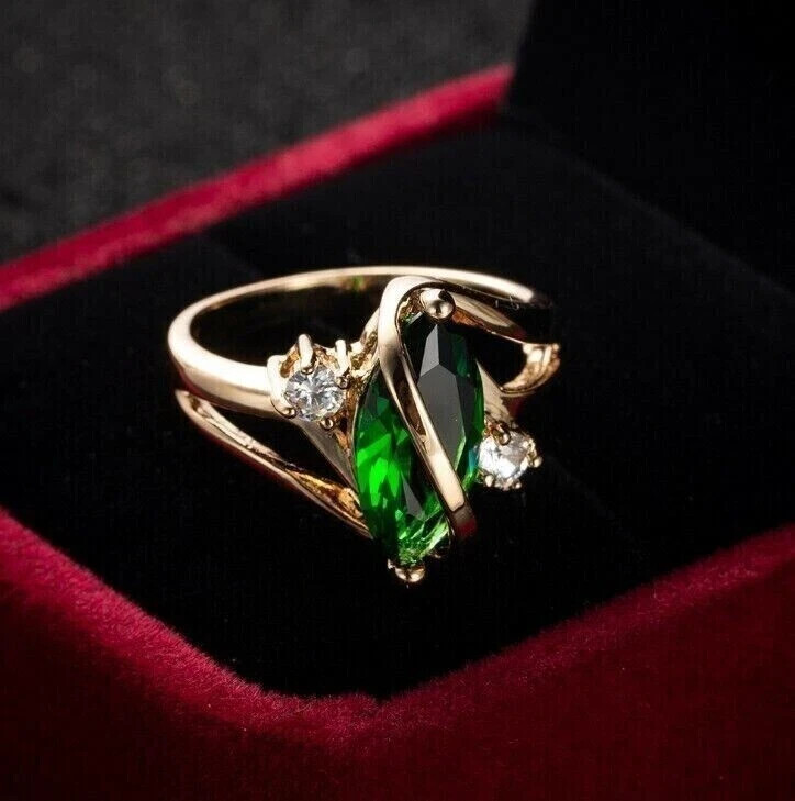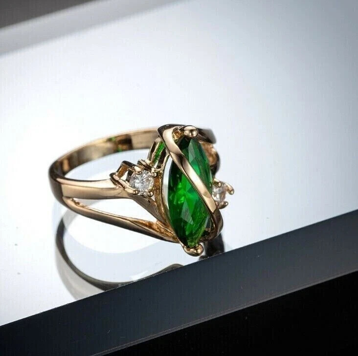 Total Carat Weight: 2.20CT Type: Ring Personalize: Yes Colored Diamond Intensity: Fancy Dark Country/Region of Manufacture: United States Pattern: Floral Wholesale: Yes Style: Ring Number of Diamonds: As Per Image Personalization Instructions: We Can Customizes As Per The Requirements Item Length: As Per Image Character: Women Ring Color: Gold Metal: 14k Yellow Gold Plated Occasion: Anniversary, Birthday, Christmas, Engagement, Valentine's Day Gemstone Clarity Grade: Loupe Clean Handmade: Yes Certification: N/A Department: Women Theme: Love Main Stone: Emerald Features: Engraved Base Metal: Sterling Silver Character Family: Wedding Ring Main Stone Shape: Marquise Accents: NA Metal Purity: 14k Number of Gemstones: 1 Item Width: As er Image Setting Style: Prong Material: Gemstone, Sterling Silver Secondary: Diamond Seller Notes: “UNWORN ITEM” Cut Grade: Excellent Diamond Color Grade: Loupe Clean Country of Origin: United States Main Stone Color: Green Customized: Yes Main Stone Creation: Lab Created Diamond Clarity Grade: Very, Very Slightly Included (VVS1) Size: All Ring Sizes Are Available. Please kindly Share Your Size Brand: sanavi_4215 Shape: Round
