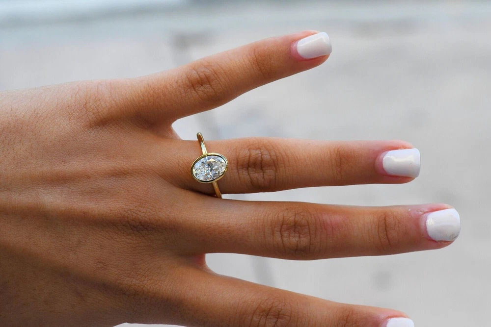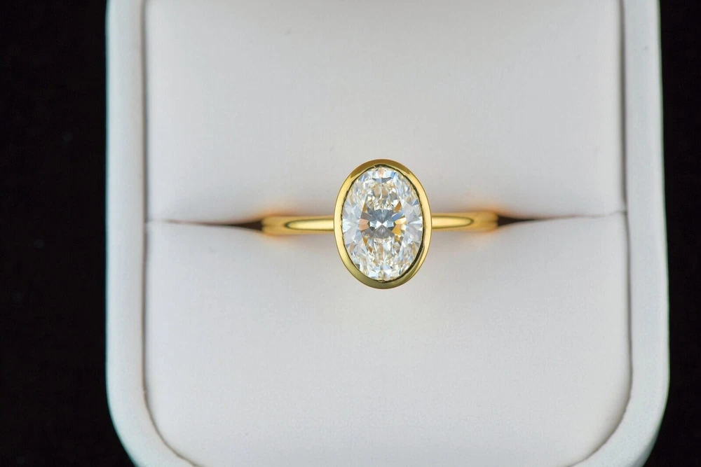 2 Ct Oval Cut Bezel Setting Solitaire Engagement Ring 14k Yellow Gold Plated