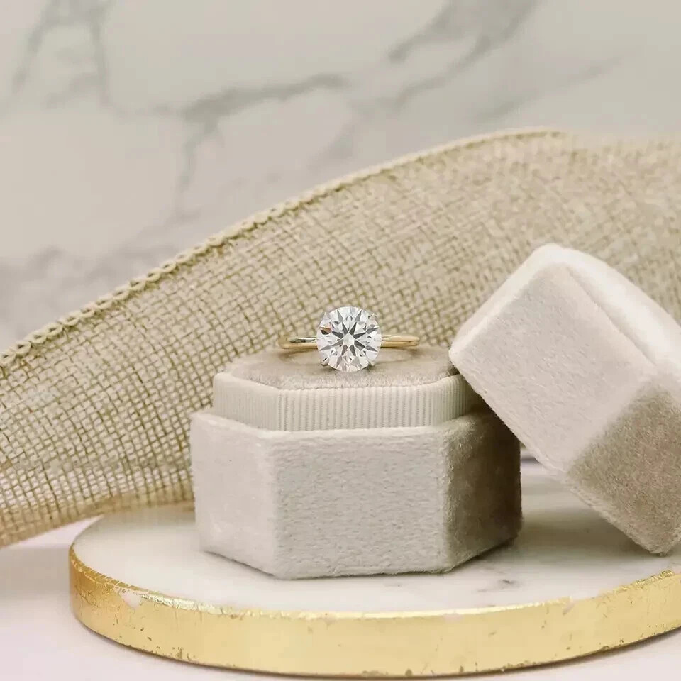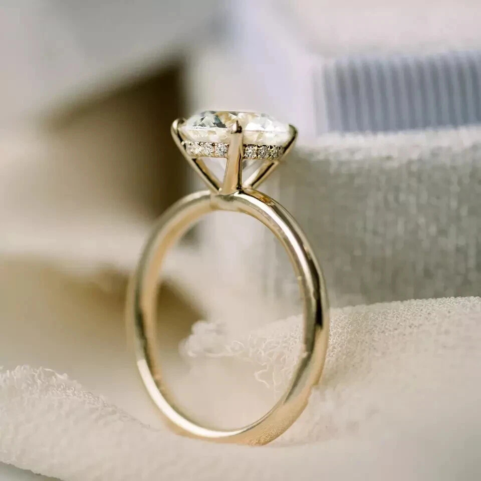 Crafted to capture her heart, this 2 Ct Round Cut Natural Moissanite Diamond Engagement Ring is a symphony of elegance and craftsmanship. Set in 14k Yellow Gold Plating, the ring features a stunning round-cut moissanite stone, embraced by a halo of delicate diamonds. Its VVS1 clarity grade ensures that the ring sparkles with a clarity that's almost flawless to the naked eye. The ring's solitaire style offers a classic and timeless design, perfect for any occasion from anniversaries to engagements. With the option for personalization, this ring can be tailored to fit any size, ensuring a comfortable fit for her unique finger. Whether it's a birthday present or a gesture of love, this ring is designed to be cherished for a lifetime.