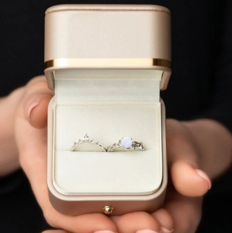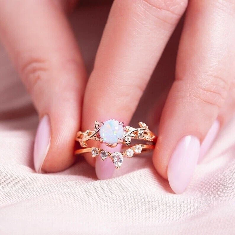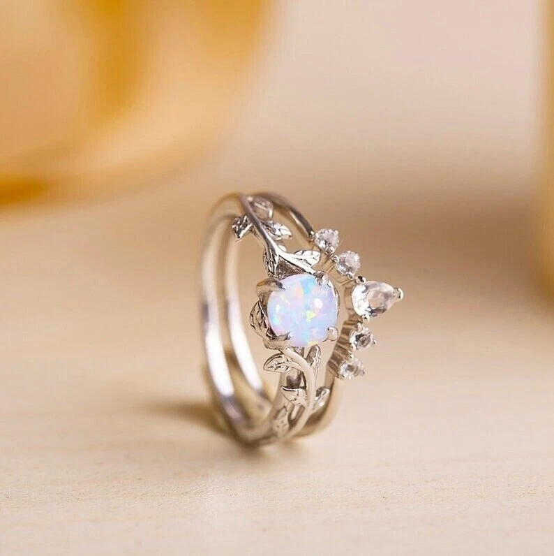 2 Ct White Round Cut Lab Created Fire Opal 925 Sterling Silver Wedding Ring Set