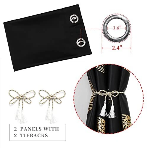 Fits Rod Size: 1.6 Inches Item Package Weight: 1.76 Kilograms Type: Does Not Apply Number of Items: 2 Brand: Does Not Apply MPN: Does Not Apply Item Weight: 3.86 Pounds Pattern: Leaf Item Dimensions L x W: 96"L x 52"W Seasons: Summer Product Care Instructions: Hand Wash Only Size: 52"W x 96"L (Pack of 2) Style: Modern Curtain Hanging Method: Grommet Item Length: 1 Room Type: Bedroom, Home Office, Nursery Top Style: Grommet Item Height: 1 Material Type: Polyester, Polyester Blend Specific Uses For Product: Light control, Indoor decoration, Room darkening, Privacy enhance Recommended Uses For Product: Indoor Color: Black/Gold Print Unit Count: 1.0 Count Curtain Pleat: Ripple Fold Opacity: Blackout EAN: Does Not Apply Curtain Form: Drapes Fabric Type: 100% Polyester Included Components: Tie Back Item Width: 1 Theme: Trees Model Name: 2 Special Features: Room Darkening, Thermal Insulated, Window decoration, Block out s UPC: Does Not Apply Closure Type: Grommet gtin13: Does Not Apply Manufacturer: Does Not Apply Water Resistance Level: Not Water Resistant