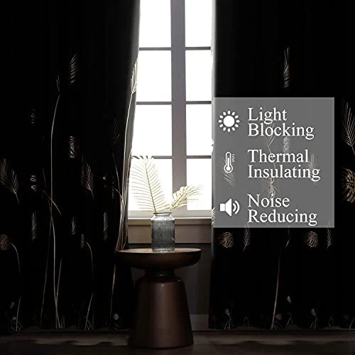 Return Policy Fast Delivery Trusted seller 2 Curtain Panels Set Designed Blackout Curtains with Gold Leaf and Wheat Pattern Window Blackout Drapes for Dining Room, 52Wx96L, Black, Set of 2 Panels Product Description 100% Polyester Imported PACKAGE INCLUDES: Each package includes 2 blackout panels and 2 tassel ropes. Each panel measures 52W x 96L inch with 8 silver anti-rust grommets (1.6 inch inner diameter) ELEGANT DESIGN:Original gold wheat and palm leaf was designed on these blackout drapes, adorn your windows more natural, elegant and sparkly. Which perfect for bedroom, living room, kids room,dining room and nursery. BLACKOUT: These blackout curtains block out 85-99% sunlight and UV rays. Owe to the triple weave technology, which make them thermal insulated, soundproof, energy efficient. Offer you a better afternoon nap or morning sleep-in (Dark colors work better). AMAZING MATERIAL: These thick and soft wheat and leaf printed room darkening curtain panels are very upmarket and made of 100% imported high quality polyester. Ensure the hand touch silky and has a pleasant feel to it that complements most decor. HASSLE FREE: Recommended hand wash and dry quickly. Wash them in cold water, not bleached, iron at low temperatures. Shipping Returns Payment Shipping Shipping is FREE to all addresses other than APO/PO boxes in the lower 48 states. All our stock ships from US-based warehouses. Shipped via USPS or UPS (depending on location and package weight) Unless stated otherwise, all orders will ship within 24-72 hours of your payment being processed. Check our feedback to see the great reviews of FAST shipping we offer. Returns Seller does not accept returns Payment We currently accept payment via eBay managed payments only. Once payment is cleared, we will dispatch your shipment within 1-3 business days. Please refer to the "Shipping" tab for more information regarding shipping speed to your destination.