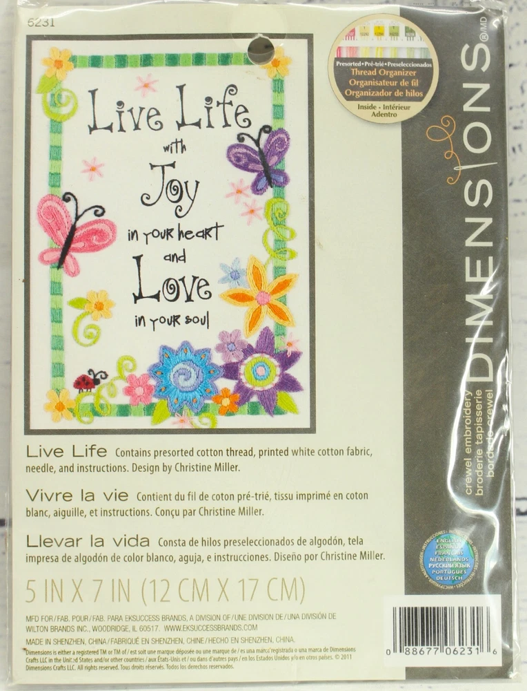 2 Dimensions Crewel Embroidery Kits 6235 Flowery Sweet Dreams & 6231 Live Life Both embroidery kits are new in package Packaging may have wear from storage Our Fun and Friendly Policies Customer Happiness is Our Priority: We're all about making you smile! If your purchase doesn't put a grin on your face, let us know. Your satisfaction is our mission, and we're here to make it happen. Fast Shipping, Happy Waiting: We're like a lightning bolt in the shipping world! Most orders zoom out within 1-2 business days of payment. Get ready to track your parcel's speedy journey to you. Return Cheers: Need to send something back? No worries! We're here to help with the return magic. Just remember, like a friendly handshake, you're responsible for the return shipping. Spreading Positivity: Your support means the world to us! Join our community of good vibes. Share your thoughts, leave feedback, and be part of our journey to keep the positivity flowing. Talk to Us, We're All Ears: Got questions, ideas, or just want to chat? We're all ears and ready to connect. Reach out through eBay's messaging, and expect a friendly response from our side! Your happiness is our driving force. Thanks for choosing us and letting us be part of your good times!