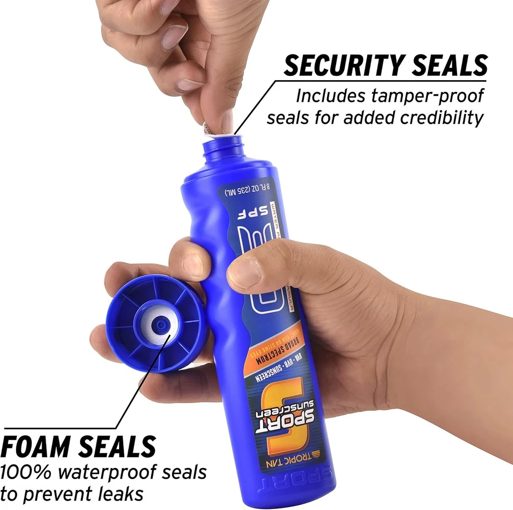 16 OUNCES TOTAL 8oz each Bottle: Includes 2 convincing sunscreen flasks that hold 8oz each, which equals 10 shots total SAVE YOUR SPENDING MONEY: Perfect for a day out with friends, cruises, festivals, beach days, theme parks, and more UNIQUE DESIGNS: 15 SPF and 30 SPF sunscreen bottle designs make it easy to fool security so you can take your flask virtually anywhere EASY FILLING: Includes mess-free funnel so you can easily fill flasks with your favorite drinks FOOD GRADE PLASTIC: Made from food safe materials, always wash before using 'Tropic Tan' Sunscreen 'Sport' Flask was designed to look like a regular bottle of sunscreen so you can fill the bottle with your favorite alcohol and take it to any outdoor event. Any suspicious eyes will quickly look over your bottle of sunscreen and allow you to bring your flask almost anywhere. We do not condone any illegal uses, but like you, we hate having to use up our spending money on overpriced drinks. Each flask holds 8oz (10 shots) and can easily be filled though its extra wide mouth (small funnel also included). Its screw cap provides an air-tight seal to prevent any leaking of liquid or odors. Once you are ready to drink, simply unscrew the cap and mix with your favorite beverage. This 2 Pack includes an 'SPF 15 ft and an 'SPF 30' so you can sneak 2 kinds of alcohol around. The flask will pay for itself after one use, so get yours today! Please remember to always obey all local drinking laws.
