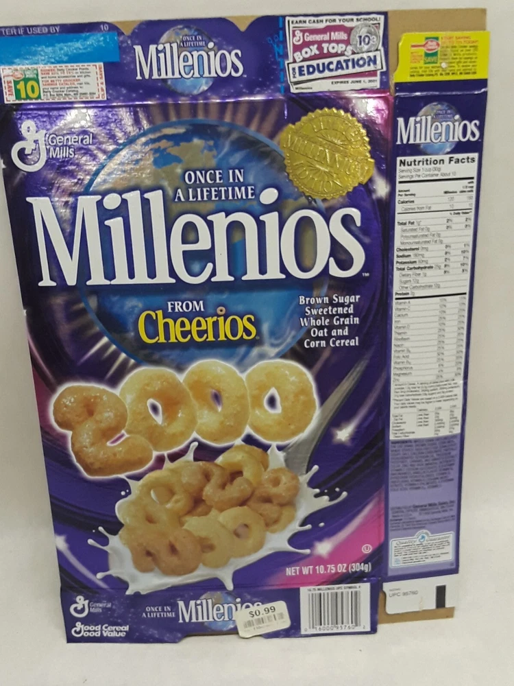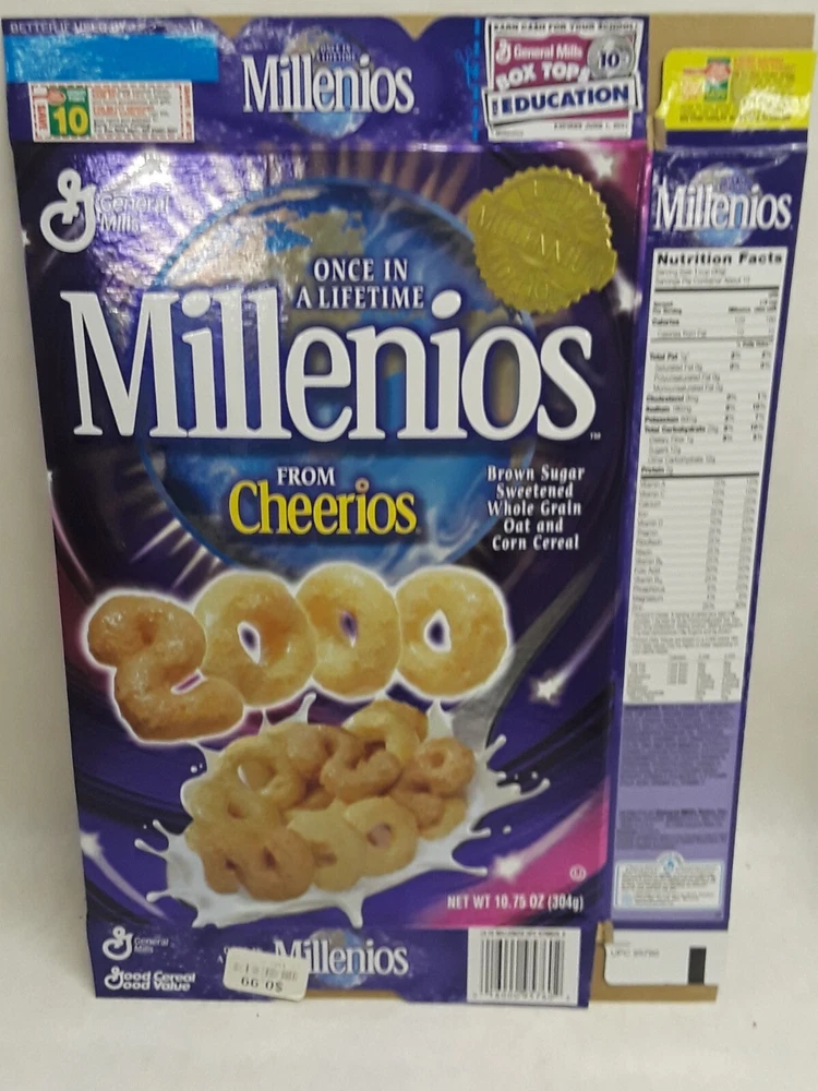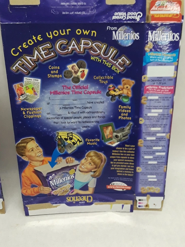 2 Flat Cheerios Millenios from Y2K 2000 Cereal Box Limited Edition . Condition is Used. Shipped with USPS Ground Advantage.