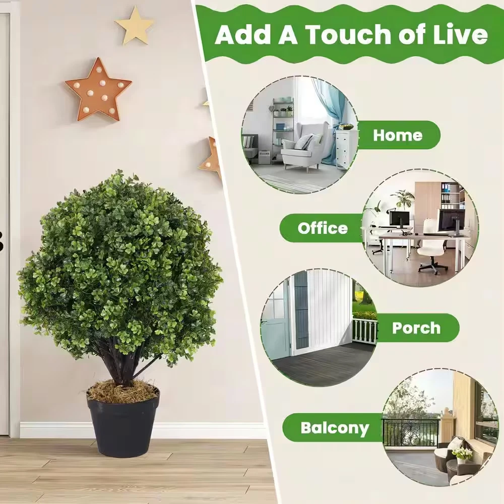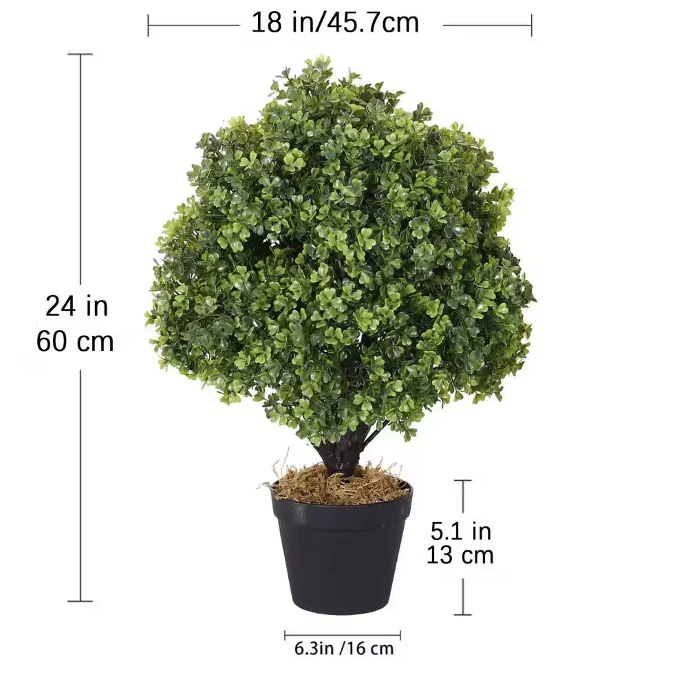 Fast Shipping On All Items 30 Days Money Guarantee Customer Support Excellent Service 100% Satisfaction Satisfaction Guaranteed 2 Ft. Topiaries Trees Artificial Outdoors 2 Pack Fake Boxwood Bushes in Potted Tree Specification Color Family Green Container Finish Family Black Container Material Plastic Container Type Pot Features UV Protected Flower Color/Finish Green Includes Nothing Additional Included Indoor/Outdoor Indoor,Outdoor Material Plastic Plant Type Boxwood Plant variety N/A Product Weight (lb) 17.3 lb Returnable 90-Day Container Depth (in) 6.3 in Container Height (in) 5.1 in Container Width (in) 6.3 in Product Height (in) 24 in Product Width (in) 18 in 18.0 inches x 6.3 inches x 24.0 inches. Weight: 17.3 lb Item Description These artificial outdoor topiary trees are environmentally friendly and durable. The leaves uses high quality plastic with UV protection, not only lifelike in shape but also is sunlight resistant, cold resistant, weather resistant, suitable for any season. No maintenance, no watering, no trimming, easy to clean with water. No matter for indoor or outdoor use are all great. Place the artificial plants in a corner of your living room for a natural accent, or use them to frame your front door for a welcoming entrance. Set topiary trees either side of your front door or garage; keep your home, garden, back yard, entryway, farmhouse, office, reception area or business looking crisp and sharp. Also making a housewarming gift as well. About us We offer the best prices around on high quality products. Our E-store includes media such as books, movies, music and games while offering electronics, toys, sporting apparel, clothing, tools, general home, garden items and more. Shipping We are always working hard to ensure your package arrives as soon as possible. Please understand that some factors like weather, high postal traffic, and the performance of shipping companies are outside of our control. We offer free shipping to the lower 48 states and ship within 2-3 business days of payment, usually sooner. We do not accept P.O. Boxes. Please provide a physical address. For shipping outside of the continental USA, we only use eBay's Global Shipping Program.The item is shipped to KY and then sent to the rest of the world. International customers are responsible for all duties and taxes. Continue to check out to calculate costs for shipping the item to your country. Messages regarding eBay's Global Shipping Program MUST be directed at eBay EXCLUSIVELY. Returns We offer a 30-Day Return Policy on items in which you are not completely satisfied with. You have the option of a full-refund or an exchange of the item. No returns are available on items shipped outside of the USA Satisfaction We try over very best to make sure every customer is completely satisfied. If there's a problem, message us! We're happy to help. Payment Options Shop With Confidence