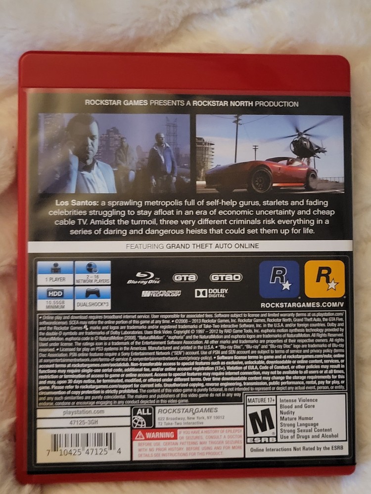 Grand Theft Auto IV and V for PS3. Booklet and map included in the GTA5 case. Booklet included in the GTA4 case. This is a lot of 2 games.