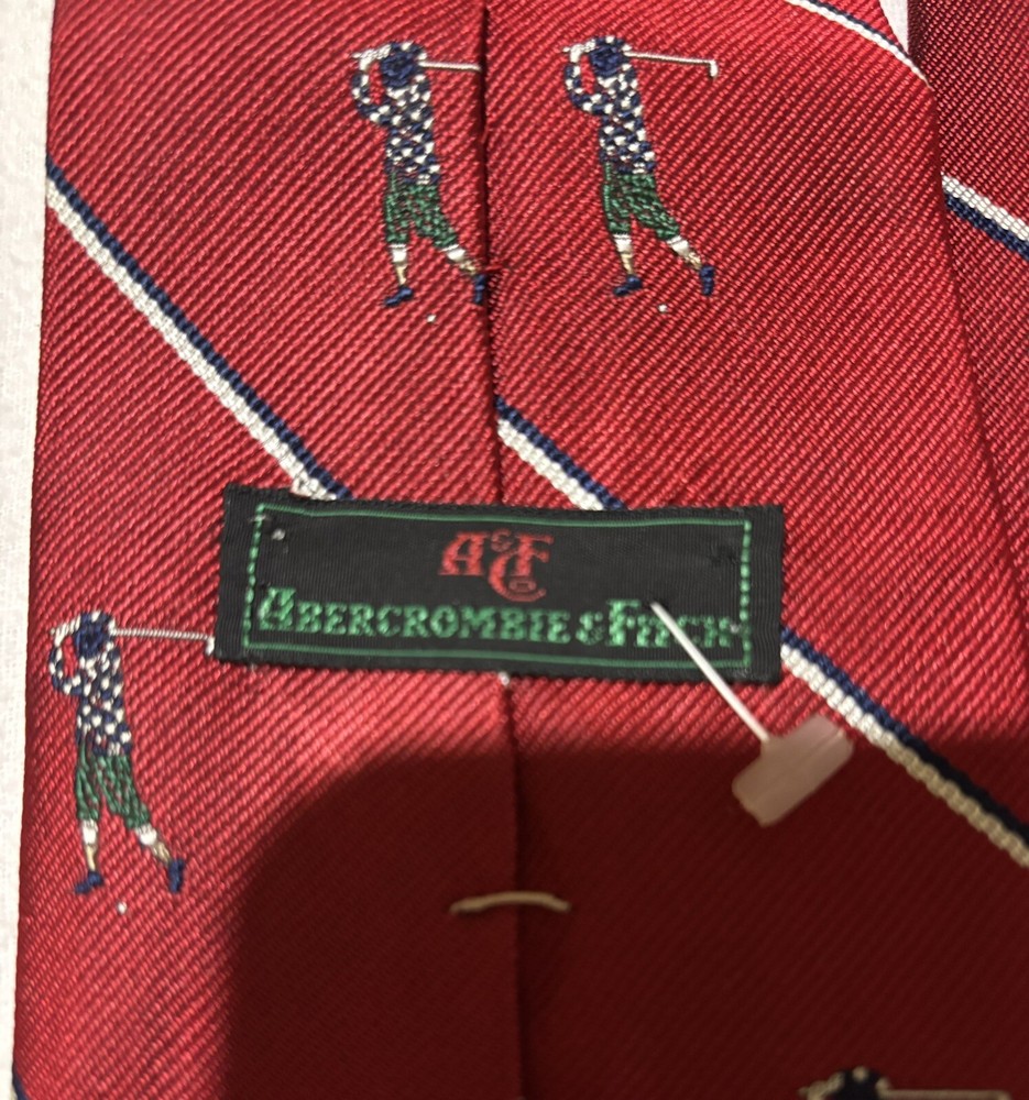 2 Golf Ties Necktie for the Golfer in your life Great Father’s Day Gift!! The blue tie with the golfer is a “Tee Shot” by Terry Rose The red one with mini golfers all over it, his Abercrombie and Fitch. I believe they are both silk.