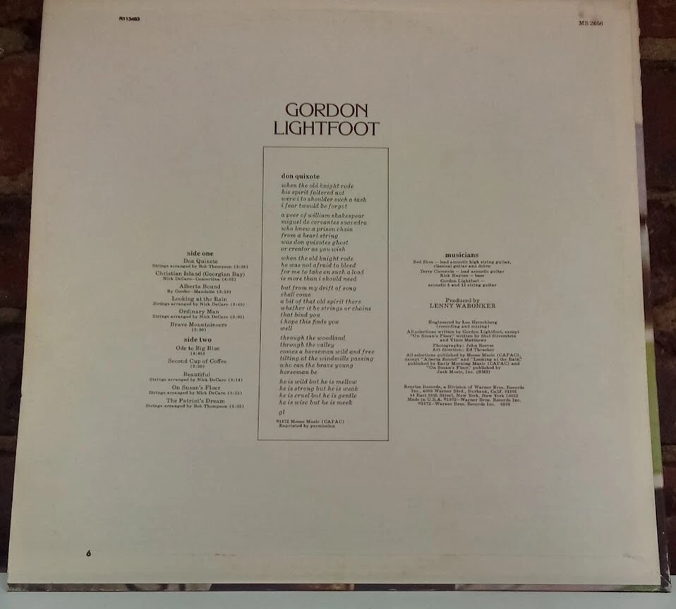"Old Dan's Records" is a Gordon Lightfoot Album from 1972. This has a little wear on the album cover, but the record is pristine. "Don Quixote" is again from 1972 and in pristine condition. These two records propelled Lightfoot into super-stardom. Both are produtcs of Warner Brothers. I will pack and ship with LOVE and bubble wrap.
