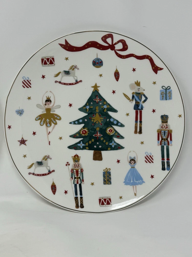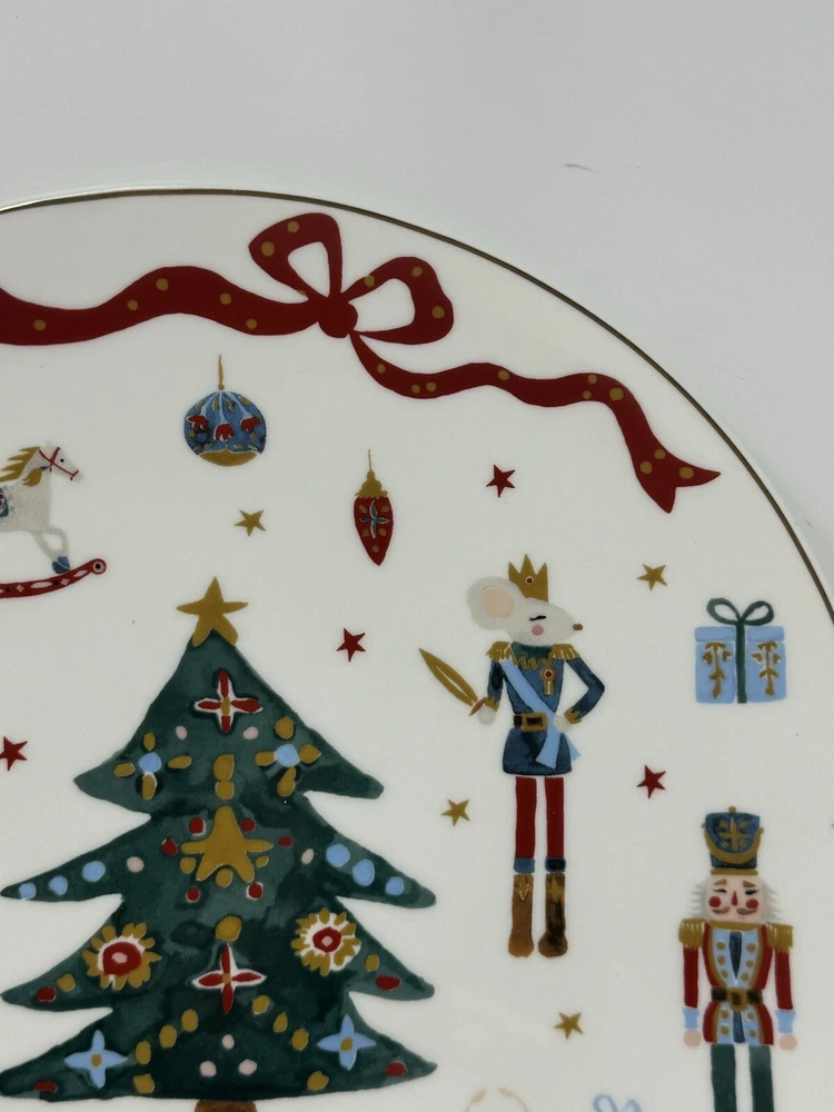 Add a touch of elegance to your Christmas dinner table with these two-piece Grace Teaware dinner plates. The round plates feature a festive Christmas celebration pattern with a glossy finish and gold trim. Made of high-quality porcelain, they are durable and dishwasher safe up to 140°F. The plates are perfect for stacking and displaying, with a diameter of 10.5". These original art pottery plates are produced using pottery techniques and are printed with the brand's backstamp. They are perfect for any Christmas occasion and make a great addition to your decorative cookware. Get your hands on these stackable and dishwasher safe dinner plates today! brand new 2024 release! very hard to find! amazing details on these! great to use for display! limited quantity! please follow our store for more