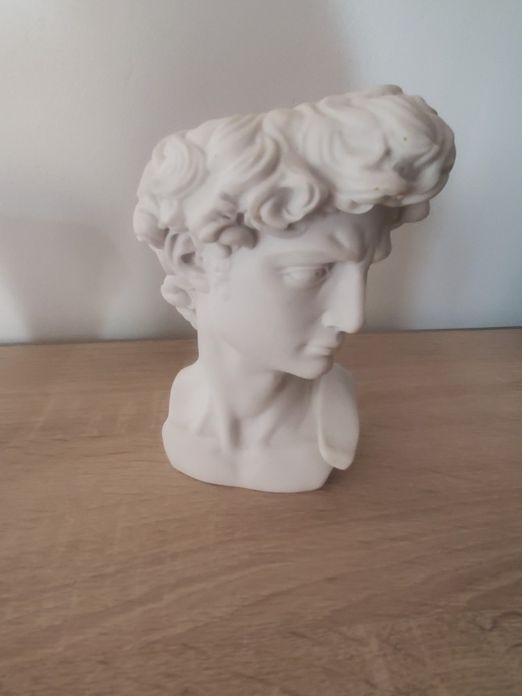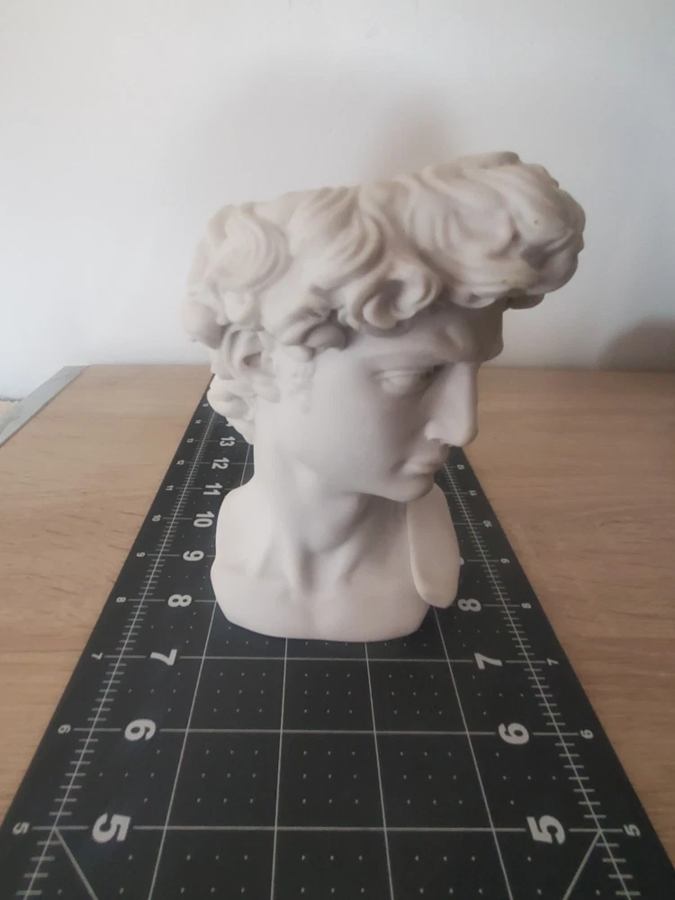 2 Greek David Statue Head Planter. Head Vase Planter for Garden and Home. Includes 2 pieces: 2 head planters of 7 in aprox each. No any other accesories included. Just the 2 planters. They look pretty. I did my best to show the plantets in diferent positions for that you can examinate her. But you can see all the pictures and judge. Any flaws are pictured and/or explained. Its your responsability as a buyer to examine all pictures and ask any questions before purchase. Only buy after checking all the pictures and asking all your questions. I am not to be held responsible for any lost or stolen packages. Shipping is 1-3 bussines days. If i am not able to ship out in 3 busines days, dont worry. I will contact you.