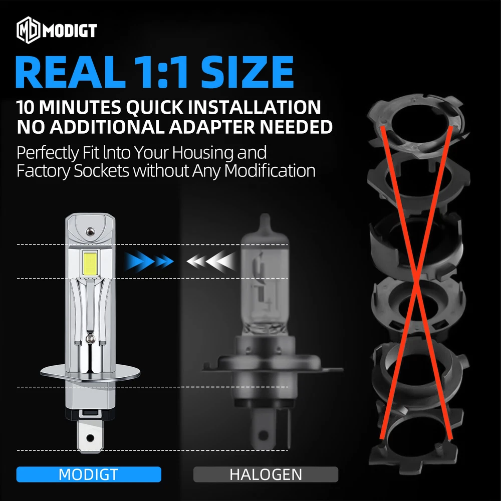 Feature: 【600% Brighter】MODIGT H1 LED headlight bulbs are designed with double-sided CSP LED chips, 6000K cool white, 22,000Lumen per set, 600% brighter than stock halogen bulbs, a perfect upgrade for halogen headlights. Allows driver get a farther, brighter, and clearer vision when driving at night 【30,000+hrs Lifespan】The advanced CSP LED technology effectively reduces the energy consumption of H1 Led headlight during operation. Premium aviation aluminum effectively pull the heat away from the LED chips, which ensures long service life of up more than 30,000 hours Breezesew Best choice of motor parts 2× H1 LED Headlight Bulb Kit Super White 6000K 40w Fanless For 2010-16 Kia Forte Feature: 【600% Brighter】MODIGT H1 LED headlight bulbs are designed with double-sided CSP LED chips, 6000K cool white, 22,000Lumen per set, 600% brighter than stock halogen bulbs, a perfect upgrade for halogen headlights. Allows driver get a farther, brighter, and clearer vision when driving at night 【30,000+hrs Lifespan】The advanced CSP LED technology effectively reduces the energy consumption of H1 Led headlight during operation. Premium aviation aluminum effectively pull the heat away from the LED chips, which ensures long service life of up more than 30,000 hours 【1:1 Beam Pattern】MODIGT H1 LED headlights 1:1 simulate the beam pattern of halogen bulbs, use ultra-thin 0.03in baseboard to ensure 360° lighting without black spots. And the emitted light beam is focused on the ground, will not cause glare to oncoming drivers 【5min Installation】Unlike other LED lights, MODIGT H1 headlight bulbs have no external driver and connector, fully all in one. That makes the bulbs almost the same size as the halogen bulb. Due to the wireless design, installation is a breeze, just plug and play Specification: Compatible With:H1 Power:20W/per bulb Lumens:22000lm Color Temperature:6000K White LED Chips: CSP Waterproof Level:Dustproof & Waterproof IP67 Operating Temperature: -40 - +80°C Lifetime:More than 30000 hours Work Voltage(V):DC 9V-32V(Fit 12V/24V vehicle) Applications:Headlight / fog driving light / daytime running light DRL Package Included: 2 x H1 LED Light Bulb Install Caution: 1. As a safety precaution, make sure that the car has had time to cool down properly before starting the installation process. 2. Put the vehicle into park or make sure it is securely in gear. 3. Make sure to have the ignition turned off and the keys removed. 4. Be careful to avoid burns, especially when turning on or off the vehicles lighting. 5. Be careful to avoid crushing or cutting the bulbs. Also make sure to not touch the bulbs with your fingers, as this will cause blotting. 6. Fully examine the connection of the contact points, ports and the wires as faulty connections can cause lighting problems. 7. Make certain that the end of the bulb does not come in contact with the interior light shield of the headlight when adjusting the bulb. Note: Please make sure it is suitable for your car before purchase. Please feel free to contact us if you have any questions. Item Specifics Brand MODIGT Lighting Technology LED To Fit Headlight, High or Low Beam Bulb Fitment Code H1 Number of Bulbs 2 Light Color Cold White Type H1 White LED Light Bulb Features Easy Installation Fitment Type Direct Replacement Material Aluminum Color Temperature 6000K Wattage 40 W Voltage DC 9V-32V(Fit 12V/24V vehicle) Lumens 22000LM Application headlight / fog driving light / daytime running light DRL Ballast Included No Operating Temperature -40℃~ 80℃ Bulb Life Hours Up to 30,000 Hours Manufacturer Warranty 2 Years Note Replace Halogen ONLY Payment 1. It will be much appreciated that you finish your payment asap or it will make UPI (unpaid item case) on your account leading to be suspended or restricted by eBay when those UPI cases carry over to certain amount. 2. Any problems please contact us for more details. Shipping 1. All items will be shipped to buyer's ebay address. 2. All items will be shipped within 24-48 working hours upon receipt of payment, and multiple items will be combined shipping. 3. In most cases, delivery takes around 3-5 business days, it's highly depended on the efficiency of the shpping carrier. If your item doesn't arrive on time, please contact us immediately for further assistance. Please note there is no local pickup service available. Returns If you are not 100% satisfied with your purchase, you can return the product and get a full refund or exchange the product for another one. Please Note: Please write us a message before your return, otherwise we will not accept the package. Any product you return must be in the same condition you received it and in the original packaging. Contact Us 1. We care about our valued buyers, if you have any questions, our Customer Service staff will be very glad to help you. We try our best to reply your ebay message as soon as possible, please kindly allow 24 hours for us to response. 2. Our goal is to make sure you are a happy buyer and pleasant shopping with us. Please contact us before leaving any 1 or 2 star ratings, negative feedback or open any dispute. We understand the concerns and frustrations you might have, and will do our endeavor to resolve the issues. Breezesew Best choice of motor parts 2× H1 LED Headlight Bulb Kit Super White 6000K 40w Fanless For 2010-16 Kia Forte Feature: 【600% Brighter】MODIGT H1 LED headlight bulbs are designed with double-sided CSP LED chips, 6000K cool white, 22,000Lumen per set, 600% brighter than stock halogen bulbs, a perfect upgrade for halogen headlights. Allows driver get a farther, brighter, and clearer vision when driving at night 【30,000+hrs Lifespan】The advanced CSP LED technology effectively reduces the energy consumption of H1 Led headlight during operation. Premium aviation aluminum effectively pull the heat away from the LED chips, which ensures long service life of up more than 30,000 hours 【1:1 Beam Pattern】MODIGT