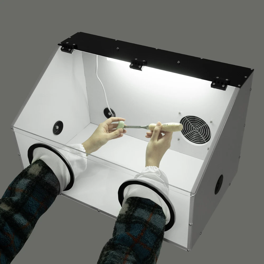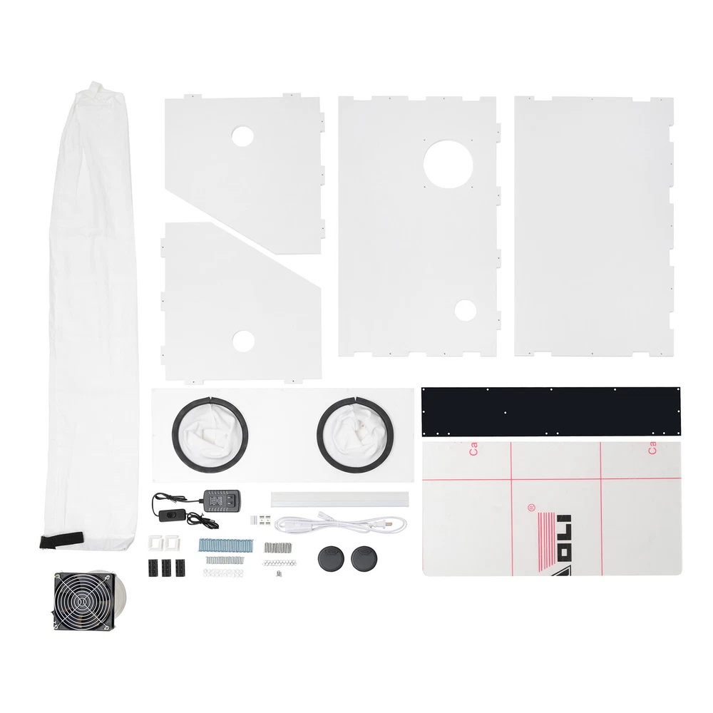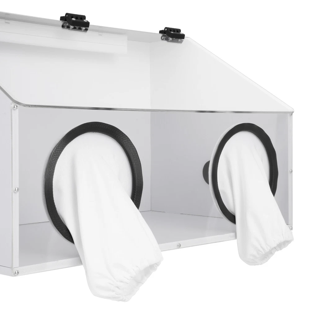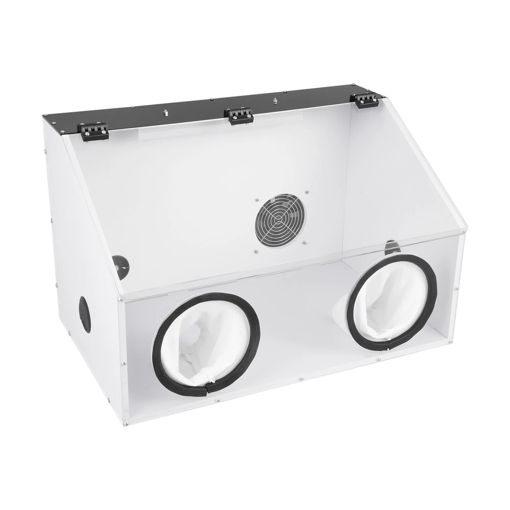 Description Uses: for Text to Play the Polishing Engraving Operation, Help to Reduce Noise and Prevent Dust Flying, Reducing the Ambient Air to Small Particles of Dust, Thereby Reducing Damage to the Respiratory System. Man Playing Can Also Reduce Dust Particles in Your Eyes, Face, Protect Their Own Safety. Using Injection Molding Hot Pressing Process,More Smooth and Durable.due to the Material of Acrylic Itself,Moulding Plate Generally Have About 0.3mm Tolerance. Parameter: Name: Dust Box Size:580x 350x 350mm Material: 10mm Thick Pvc Board, 4mm Plexiglass Board Voltage:110v Package Include: 1 Set of Dust Box 1 Blower 2 Holes Electric Fully Enclosed Grinding Polisher Acrylic Dust Box Cover W/LED Description If you are engaged in polishing and carving operations, the 2-hole table polisher dust box will help you a lot. It has excellent closed design and dust absorption , which can prevent dust from entering your eyes, nose and mouth, and protect your health and safety. In addition, the dust box also has high visibility, making it convenient for you to observe the situation of internal situation and better grasp the operation progress. Choose this dust box to keep your antiques shining with beautiful radiance! Key Features Sturdy & Durable: Reinforced with 0.41inc h PVC board and 0.15inch plexiglas board, it is very light ( 11lbs ), sturdy, smooth, and durable, allowing for long periods of use . User-friendly Design: To ensure your safety and health, the box is adopted a closed design that effectively blocks particles such as dust from entering your eyes, mouth or nose, ensuring your comfortable experience. High Visibility: Its transparent lid allows you to clearly observe all details during use. The product is equipped with energy-saving, eye-friendly LED light, which can operate normally even in low light environments . Convenient Design: The package includes all parts, and the overall structure is fixed with precise screws. Therefore, the box can be repeatedly installed and disassembled, making it more convenient to use or store. Clean Maker: Its small internal fan ( 5500r/min ) can effectively suck dust into the dust bag (3.5ft), which can easily collect these small particles and save you time cleaning dust. Low Noise: Due to its closed design, it can effectively isolate operating sounds and reduce noise during the use. It can create a quiet environment, so you can operate with peace of mind no matter when or where you are. Easy to Operate: The box provides ample operating space ( 22.8*14.37*14.37in ) and ideal cuff diameter( 6.7in ), making it easy for you to operate inside the box. Satisfaction Guarantee: No matter what problem you encounter or have any questions, please contact us. We will reply and solve the problem for you as soon as possible. Details Hinge Connection: The hinge connection makes the opening and closing more stable and firm. Its installation does not require glue, which is convenient and effortless . Threading Hole: The hole ( 1.96in ) facilitates the power lines to be threaded into the box, preventing line entanglement . Cotton Cuffs: The cotton cuffs are more skin friendly, providing a comfortable operating experience. Application It can be used for carving, cutting, drilling, polishing, milling, grinding, brushing and descaling of dentures, jewelry, jade, stone carving, wood carving and handicrafts . Specification Material: PVC, Plexiglas Board Color: White, Clear Shape: Rectangular Process: Injection Molding Hot Pressing Type: Toolbox Number of Holes: 2 Input: AC100-240V, 50-60Hz Output: 12V, 2A Plug: US Standard Fan Power: 5W Fan Speed: 5500r/min Fan Diameter: 12cm/4.72in PVC Board Thickness: 1.05cm/0.41in Plexiglas Board Thickness: 0.37cm/0.15in Cuff Diameter: 17cm/6.7in Threading Hole Diameter: 4.97cm/1.96in Dust Bag Length: 106.5cm/3.5ft Top Width: 10.8cm/4.25in Front Board Height : 21.3cm/8.39in Package Size: 72.3*45*11cm/28.5*17.7*4.3in (Large); 26*17*20cm/10.2**6.7*7.87in (Small) Product Size: 58*36.5*36.5cm/22.8*14.37*14.37in Net Weight: 4.45kg/9.81lbs (Large); 0.6kg/1.32lbs (Small) Gross Weight: 5.35 kg/11.8lbs (Large); 0.75kg/1.65lbs (Small) Package Included 1* 2-hole Table Polisher Dust Box 1* Fan 1* LED Light 2* Power Cords Other Accessories for Installation Notes Please note that the commodities with fan models are shipped in two packages, a large (dust box, screws, LED light), and a small (inside fan, dust bag), so that the packaging is to prevent the collisions of accessories and plates during transportation. Please be ware of electrical safety hazards. Please use such tools by the product instructions and take the necessary personal protective measures, and place them out of the reach of children daily. Please allow the slight color difference caused by the shooting light and 1-3cm error due to manual measurement, and make sure you do not mind before ordering. Payment Delivery details Terms of sales About us Contact us Payment We accept ebay payment 。 Fees such as import duties, taxes are not included in the item price or shipping costs. These charges are the buyer's responsibility. Delivery details Shipping: 2-9 working days to: USA Terms of sales We maintain high standards of excellence and strive for hundred percent customer satisfaction. Feedback is very important to us. We hope that you contact us immediately before you give neutral or negative feedback, so that we can address your concerns. It is impossible to address issues if we do not know about them! About us Your satis faction is our ultimate goal. We work hard to earn your trust and future business. Our certified technicians have tested each item before shipping. The unit comes with 1 year limited warranty on all manufacturing defects. a) If you receive a defective item, you may return it or ask for a discount. Please contact us within 14 days after you receive the package. b) What you returned must be intact and in its original packaging as re? u. Customer is responsible for shippi